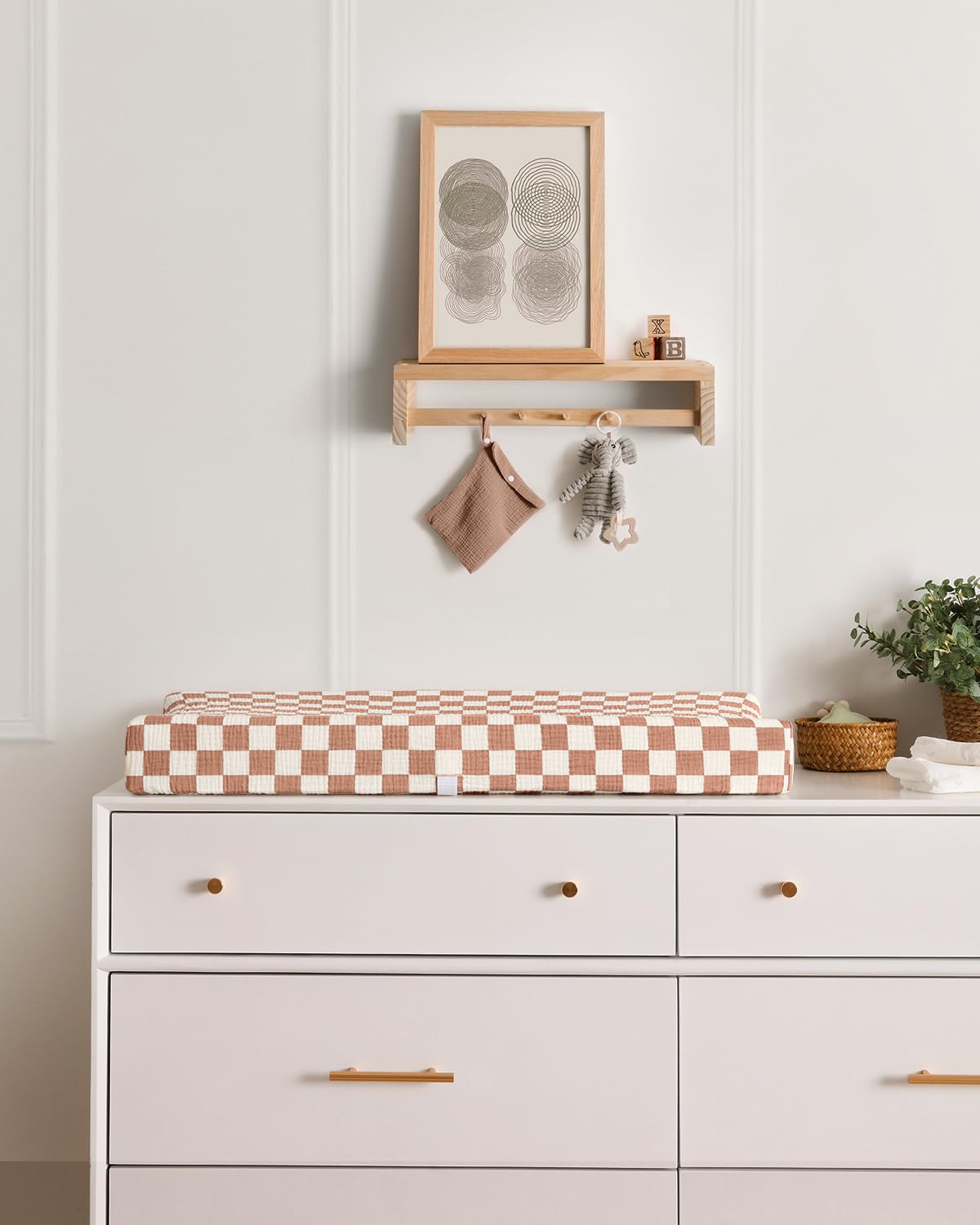 2 Pack Change Table Covers: You'll get two packs stylish checkered brown & brown baby changing pad covers for daily replacement or accidents. You can aslo change it to suit the style of your nursery or just your mood