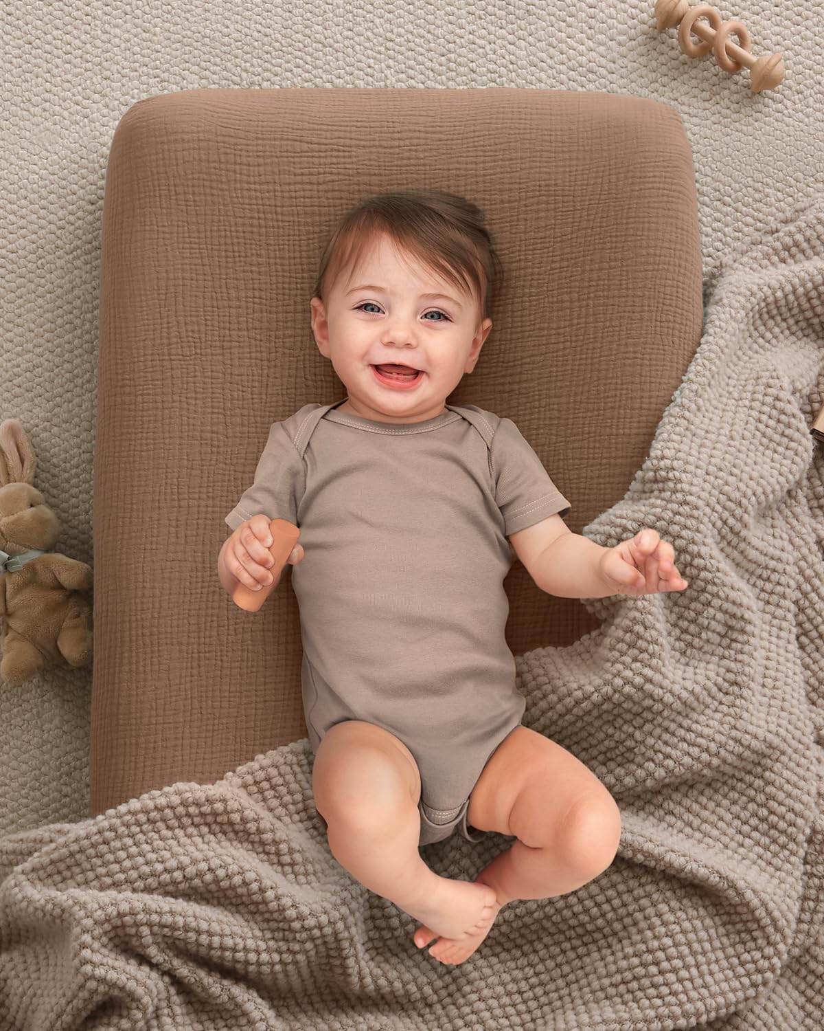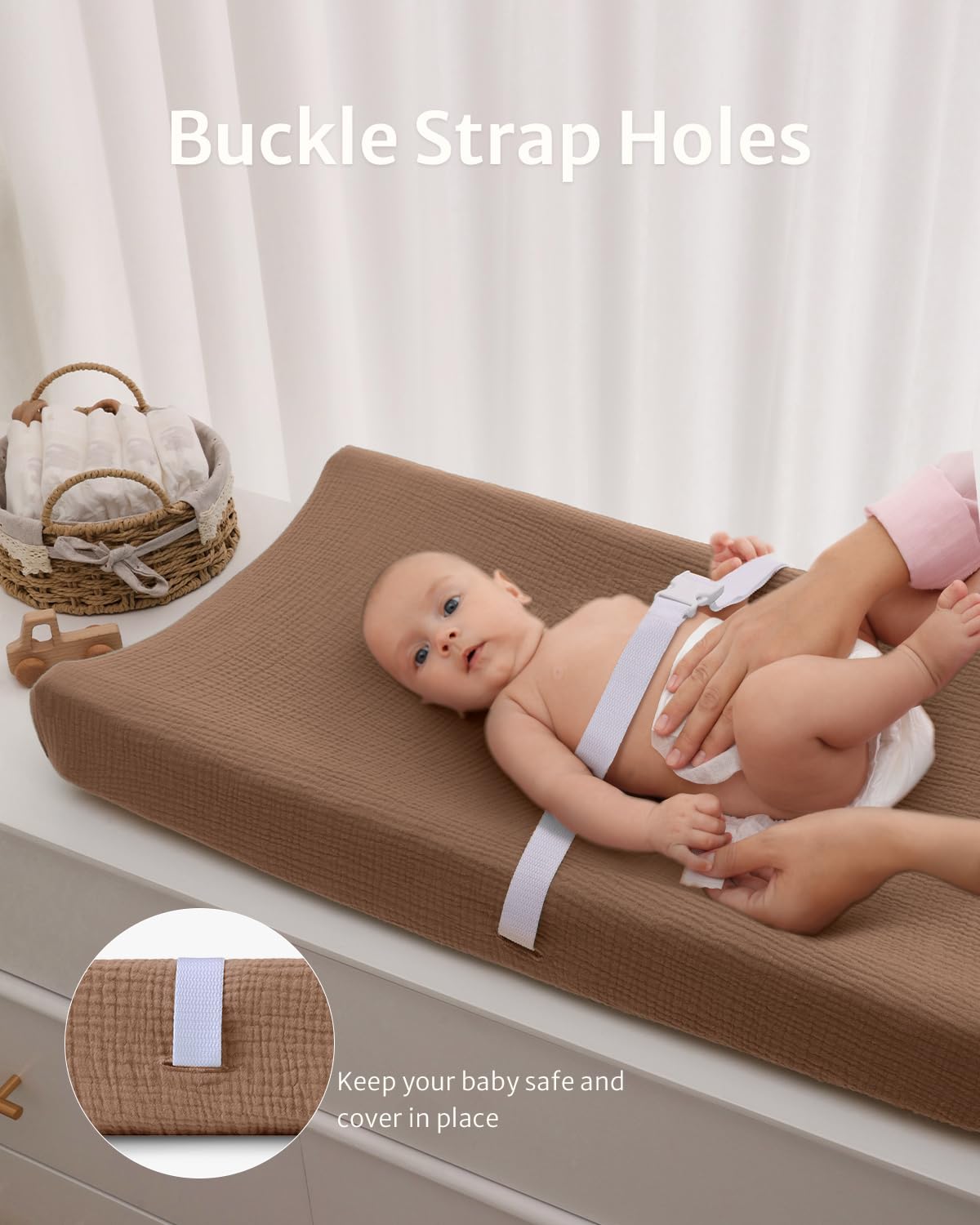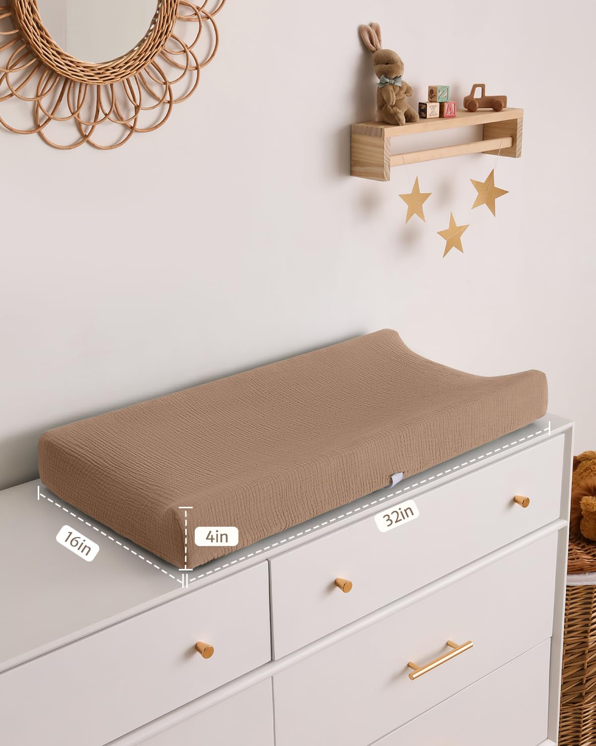 Muslin Cotton: Our changing pad covers are made of muslin cotton, with a smooth surface and comfortable touch,features a light drapability and rigidity, suitable for your baby's delicate skin