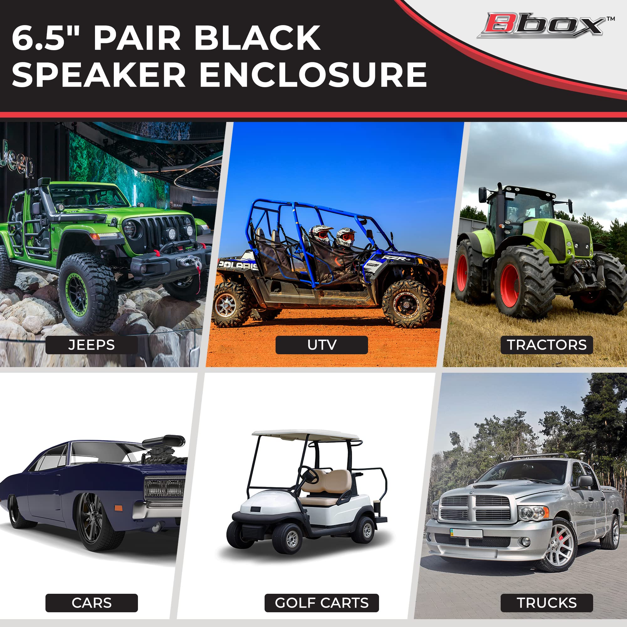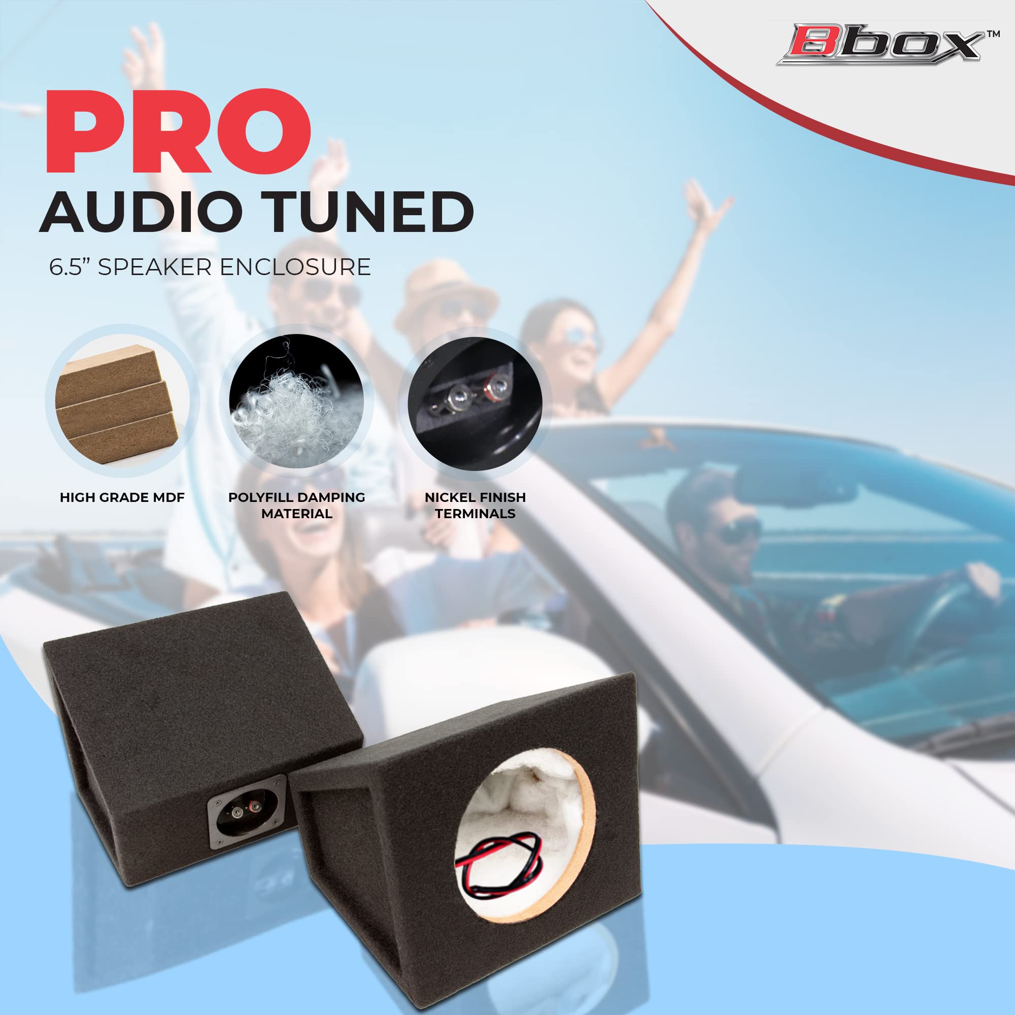 Set of two (2) 6.5 inch Bbox Pro Audio Tuned Speaker Enclosures that reduces rattles and vibrations whilst vastly improving musical sound quality. Plus, they can be used in the home/motorhome, truck, ATV, or car. Easy to set up and coming ready to use, they're ideal if you need a 6.5" speaker box to significantly elevate your music listening experience for years to come.