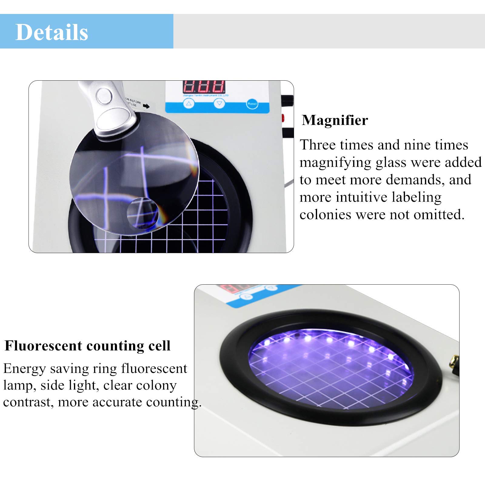2.This product adopts energy-saving circular fluorescent lamp side-illuminated illumination, and the colony contrast is clearly visible for easy observation.