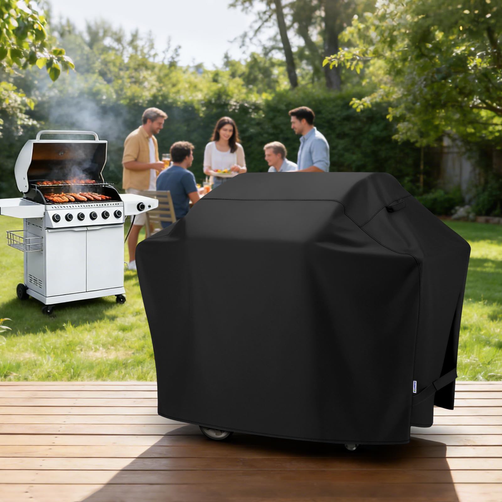 Convenient Fabric Handles - Two useful fabric handles on both sides near the top of the barbecue grill cover make it easy to position and remove the cover from the grill. It can also be used as loops to hang up at side when your grill is in use.