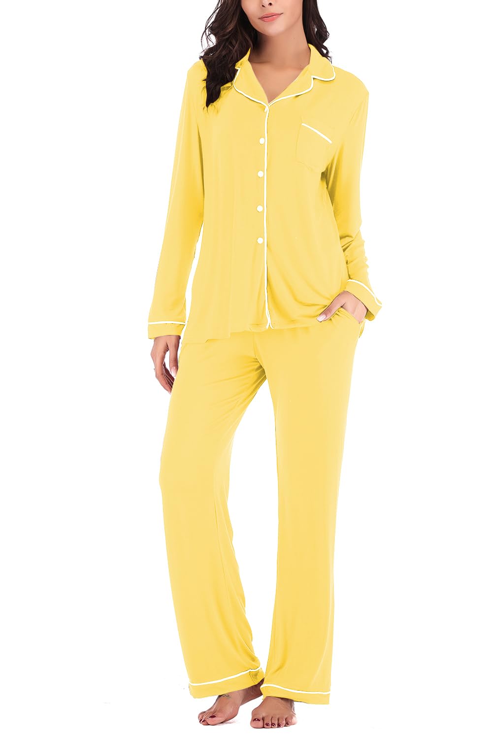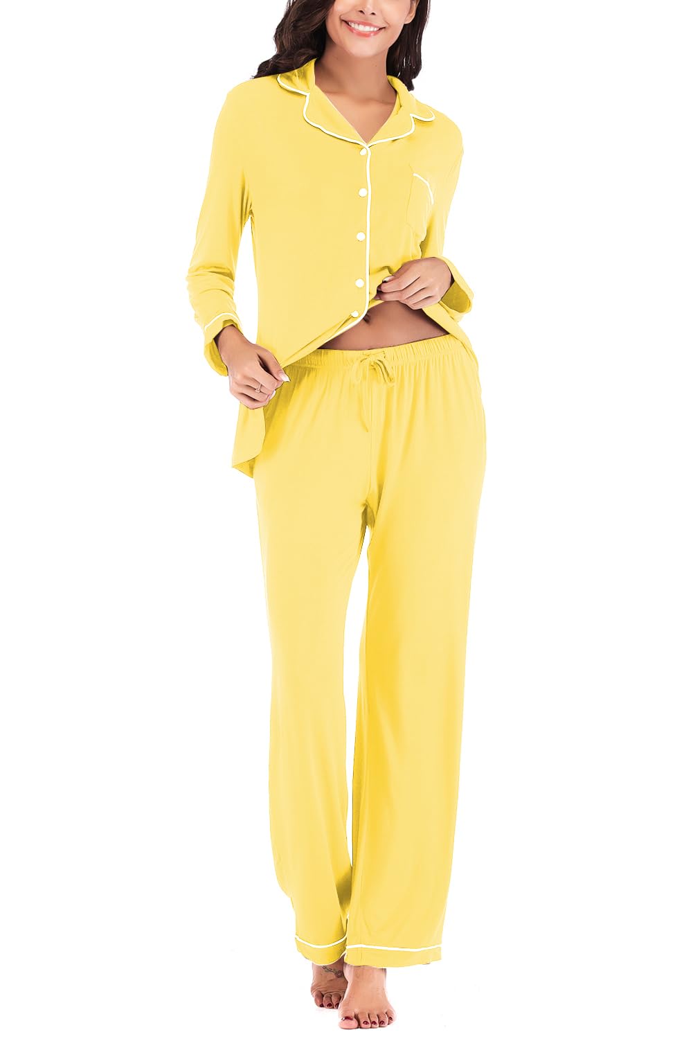 HIGHT QUALITY MATERIAL-- 95%Rayon/5%spandex.pajama boasts a supple blend of super-soft modal jersey, which feels cool to the touch and slips over skin effortlessly.