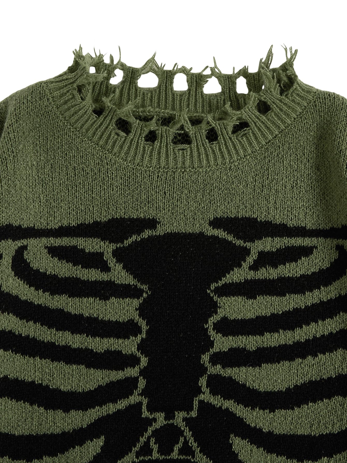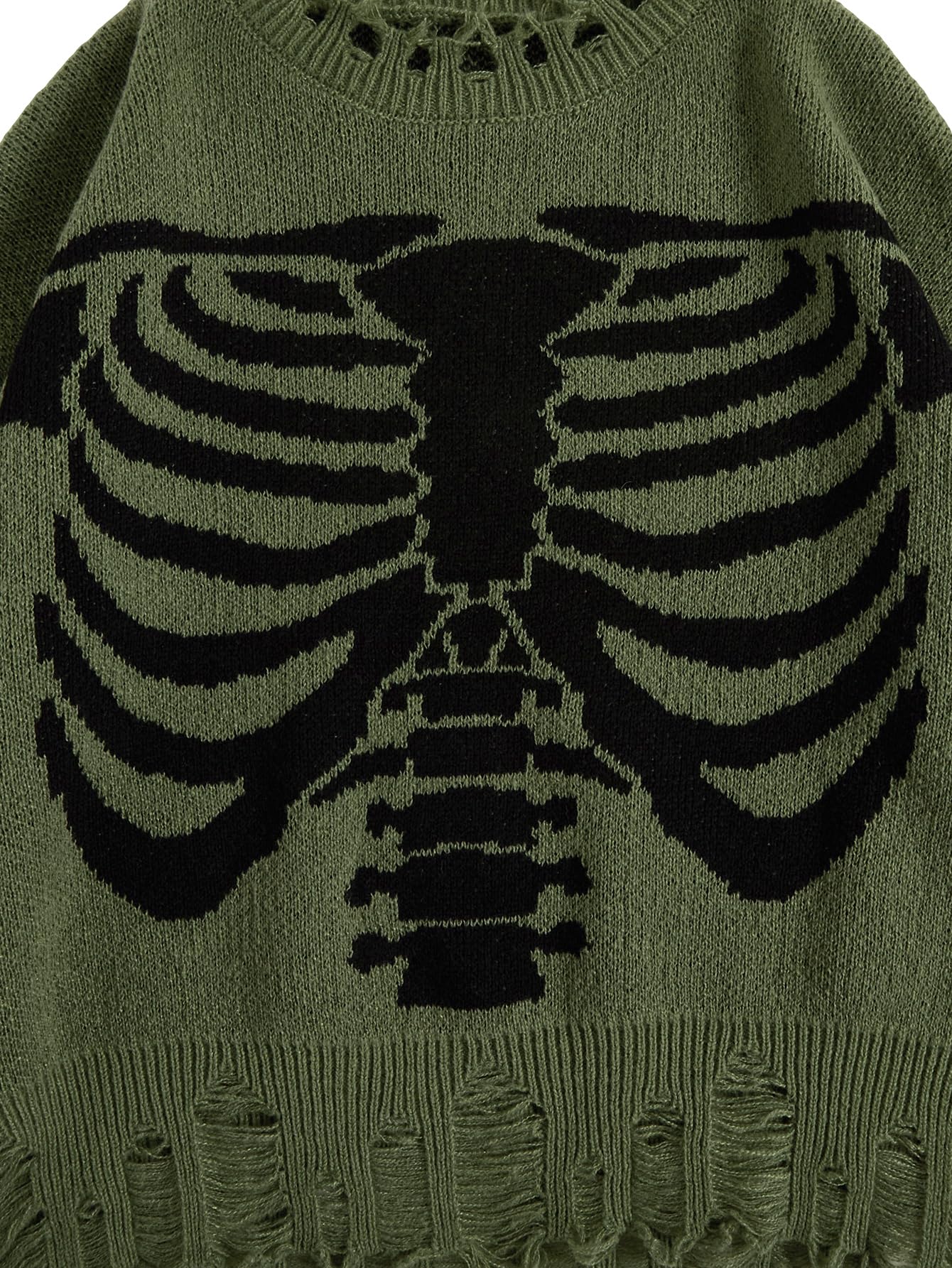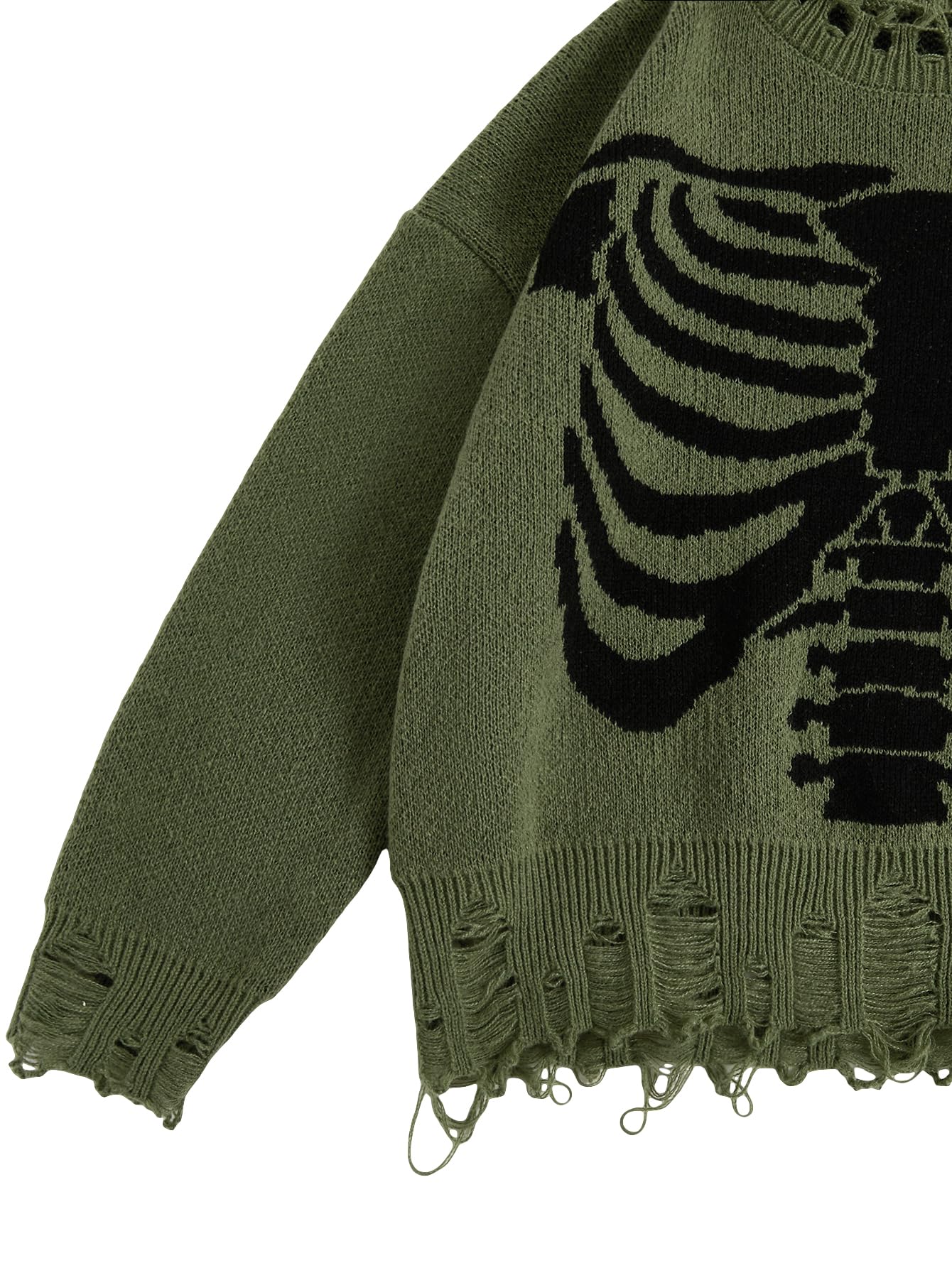 Feature: skeleton pattern, round neck, long sleeve, oversized pullover sweater for women