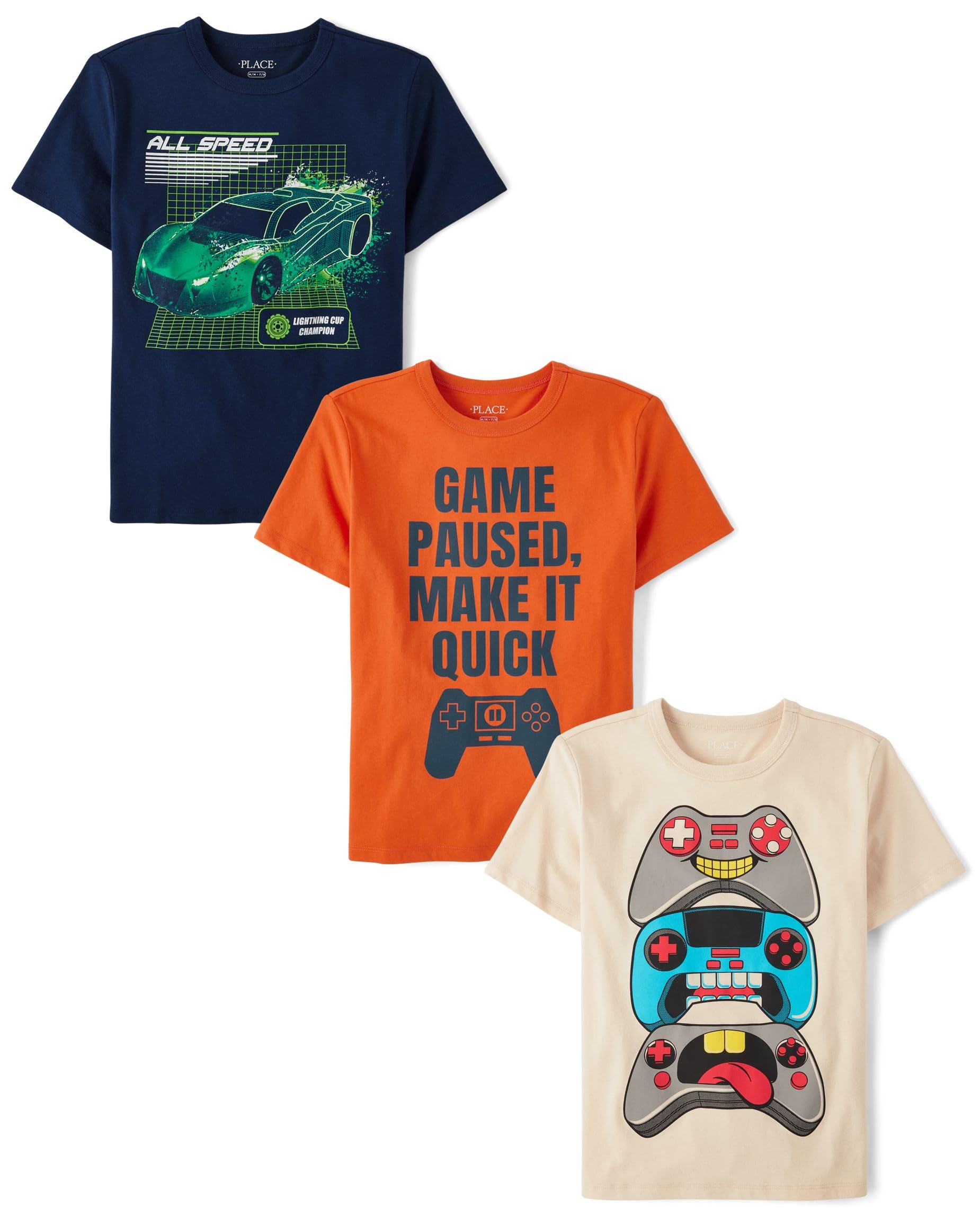 MULTIPACK: 1 'All Speed' with racecar graphic design, 1 video game controllers with mouths graphic design, 1 'Game Paused, Make It Quick' with video game controller graphic design