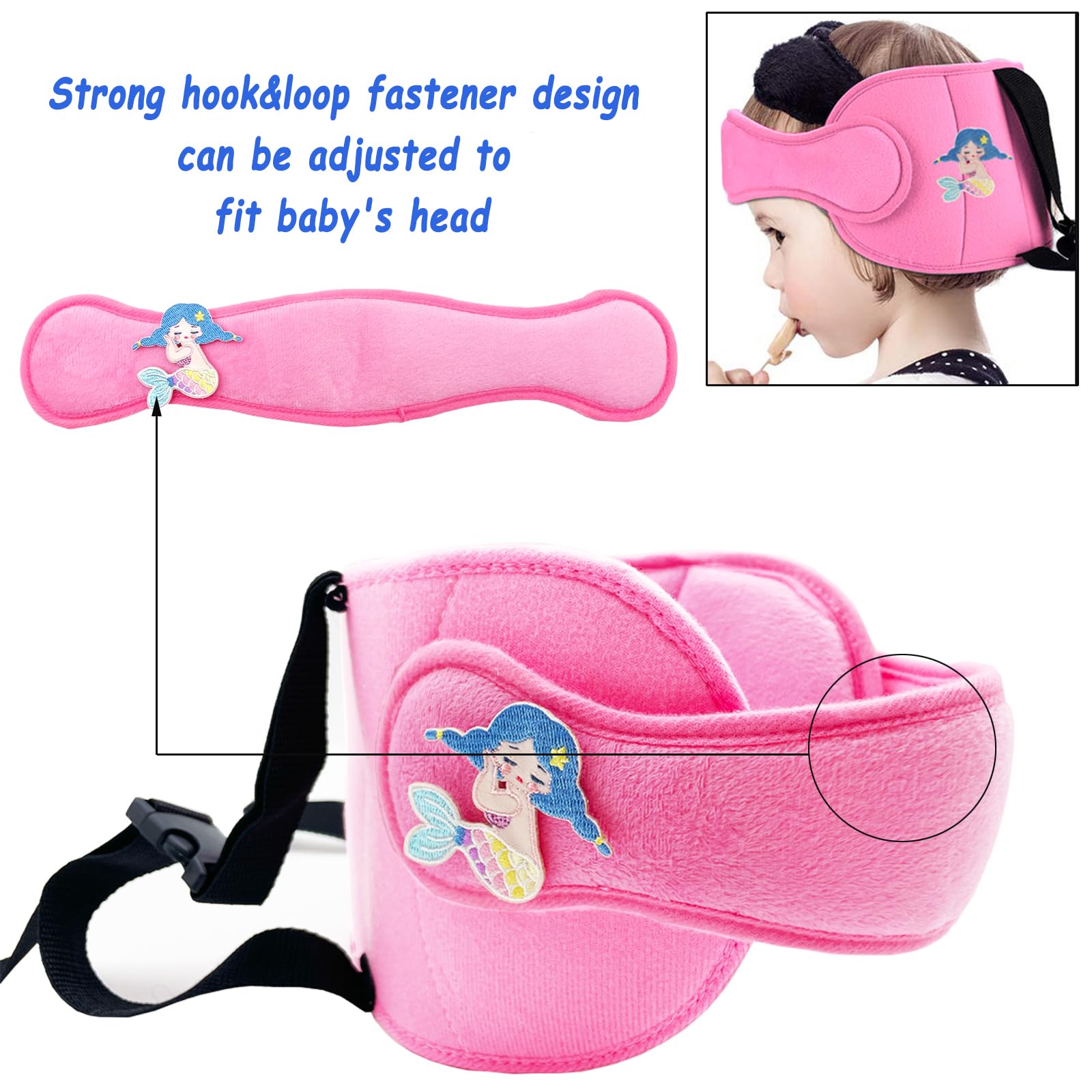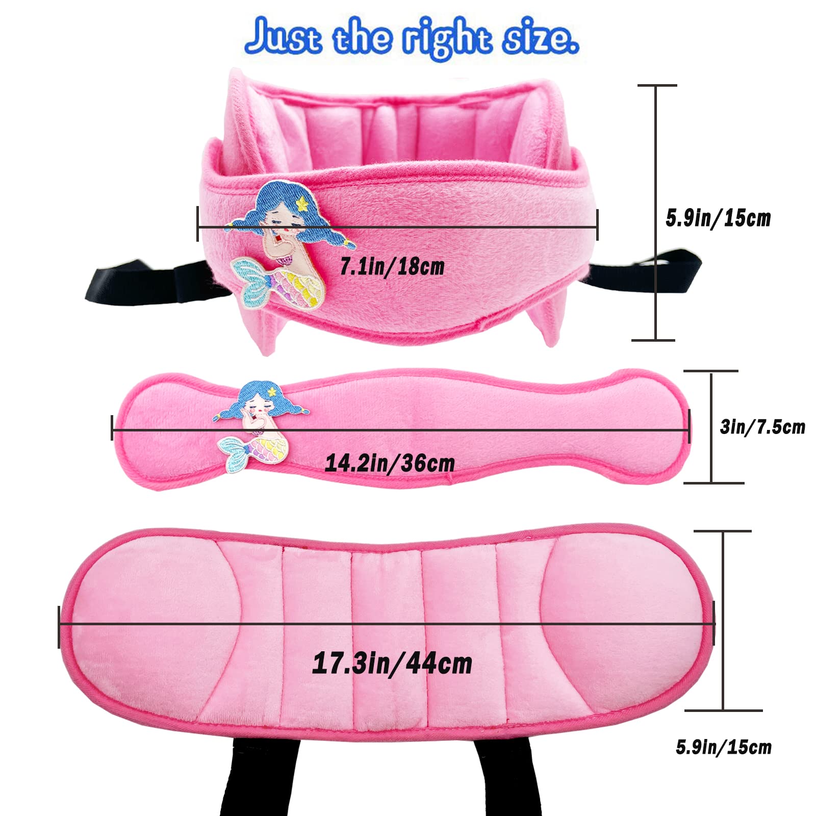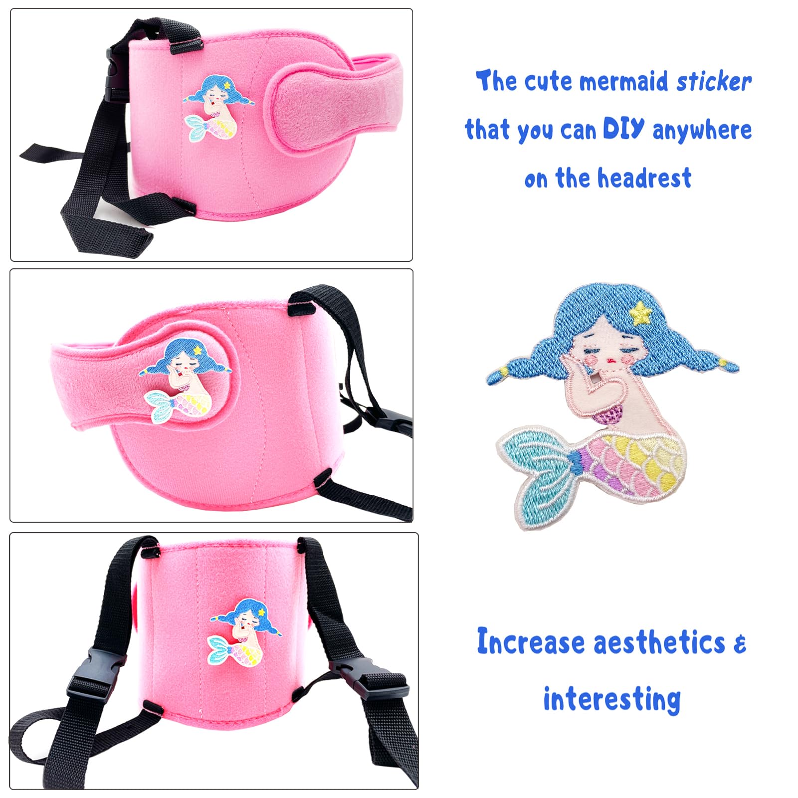 Increase Interesting: The kids head support band comes with a cute mermaid velcro that you can DIY anywhere on the headrest; This will make kids love to use this head support more