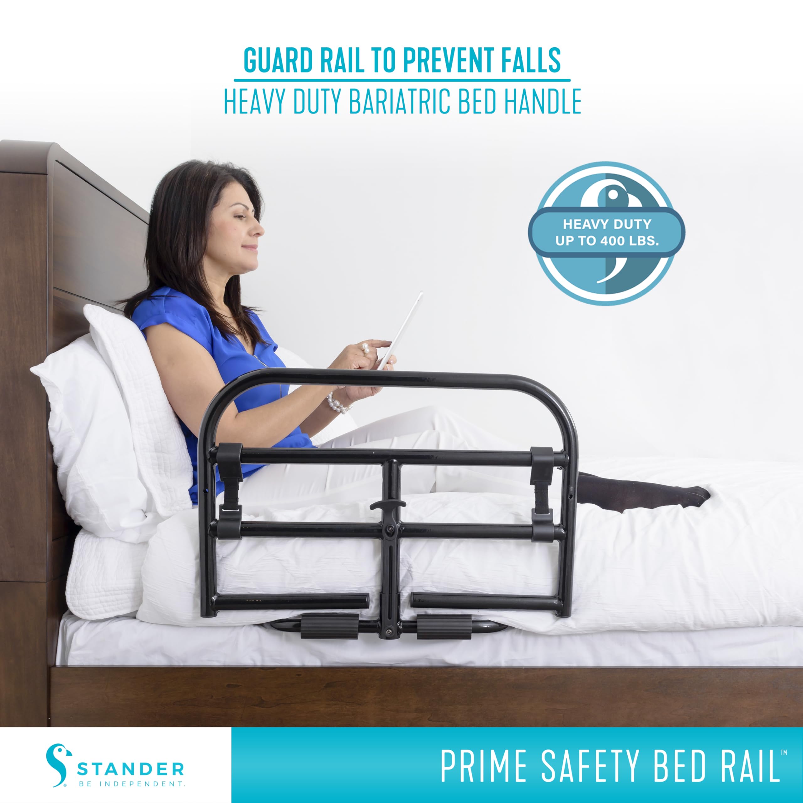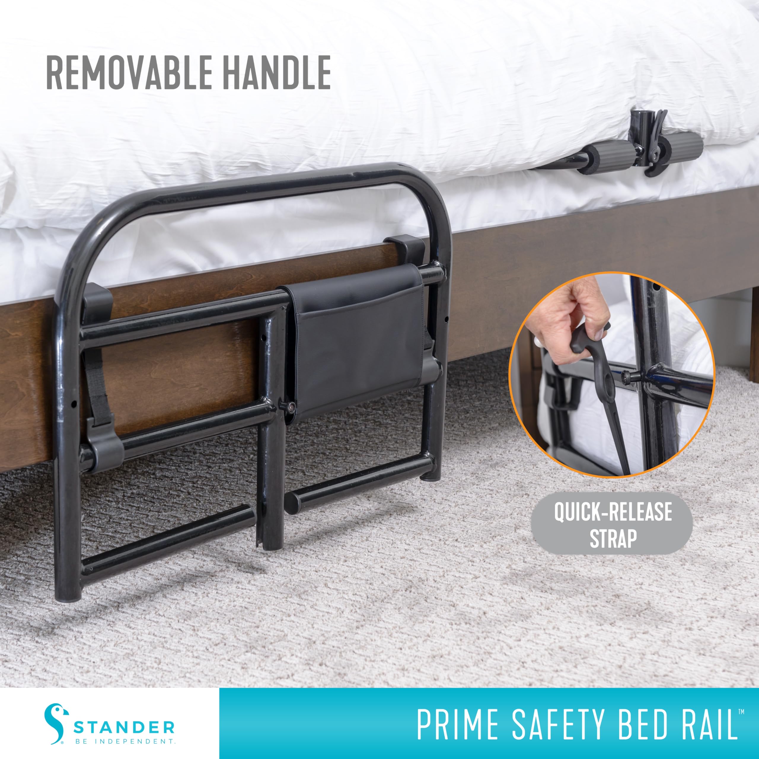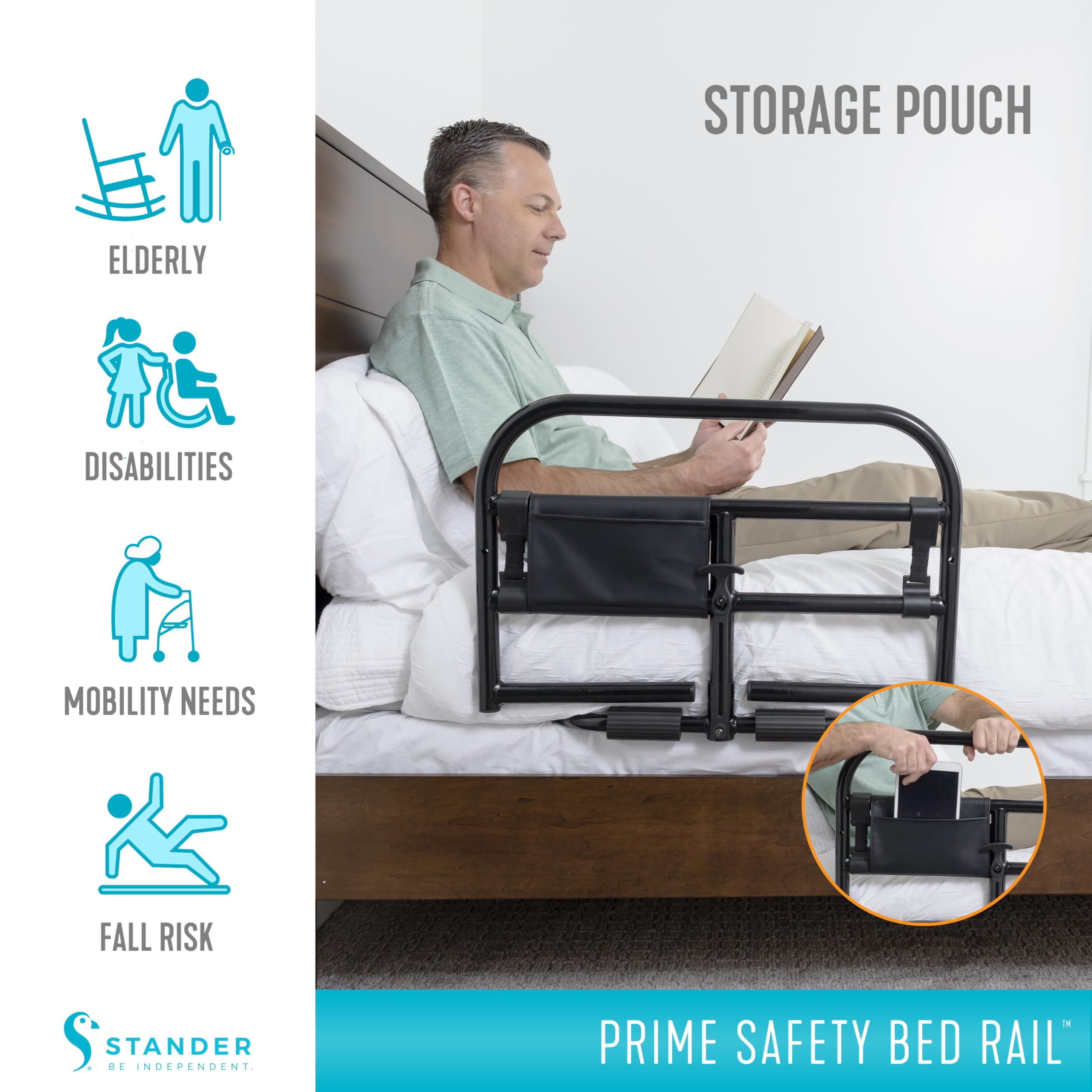 Prevent Falls: The sturdy hand rail of the Prime Bed Rail will aid you or your loved ones when transferring in and out of bed and the bariatric design supports up to 400 pounds; keep your remote, glasses or medications close by in the included pouch