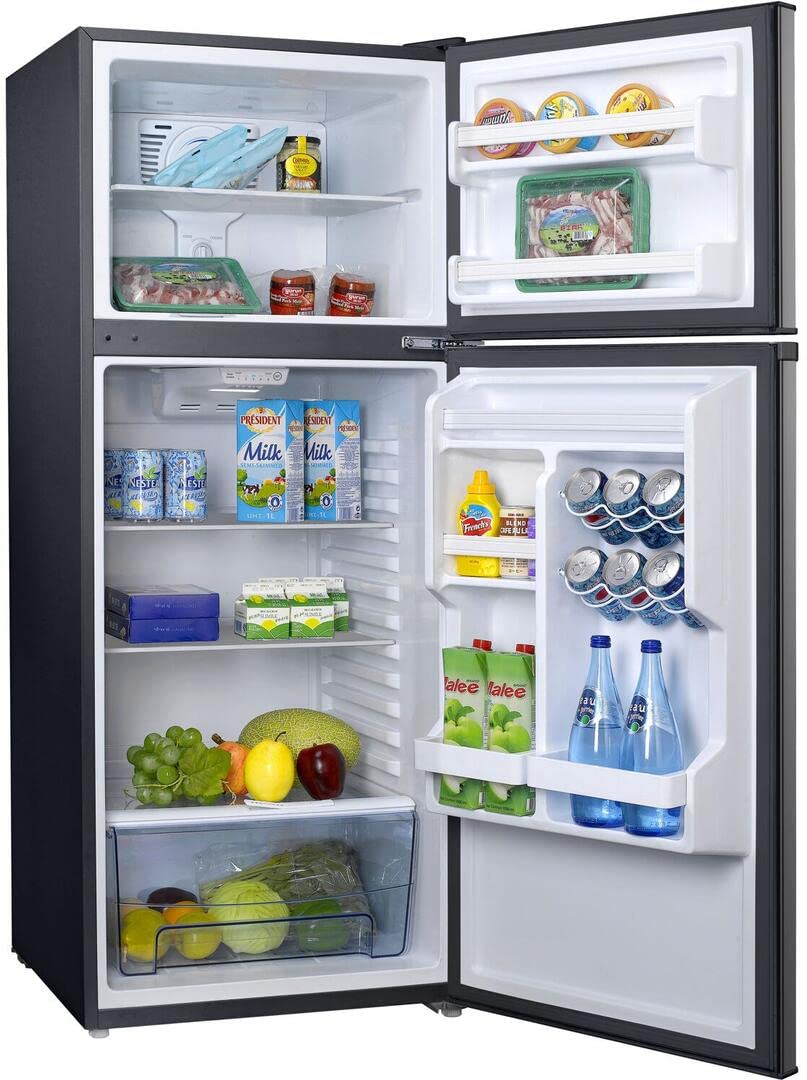 Space-Saving & Large Capacity: This Top Mount Refrigerator With 23.58*25.71*59.72 Inches Measurement And 10.0 Cubic Feet Capacity Is Perfectly Sized To Keep Your Favorite Beverage Cool, Fruit Or Other Food Fresh, While Taking Up Minimal Space In Your College Dorm, Rv, Apartment, Garage, Camper Or Basement..Amperage : 1.2 amps