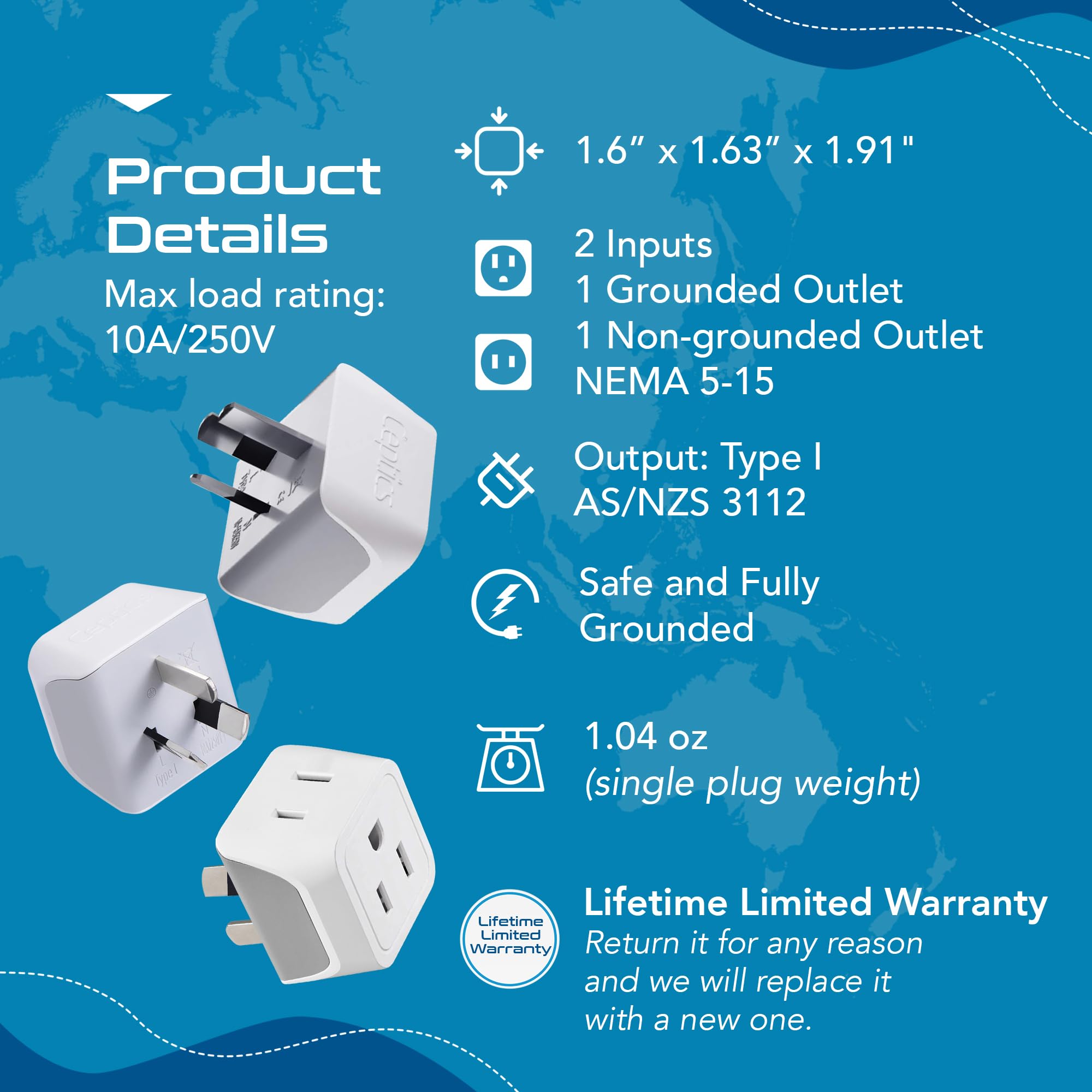 DESIGNED FOR A TRAVELER: Our Australia power adapter is designed in the USA & includes Limited Lifetime Warranty - Return it for any reason and we will replace it with a new one with Ceptics Advantage!