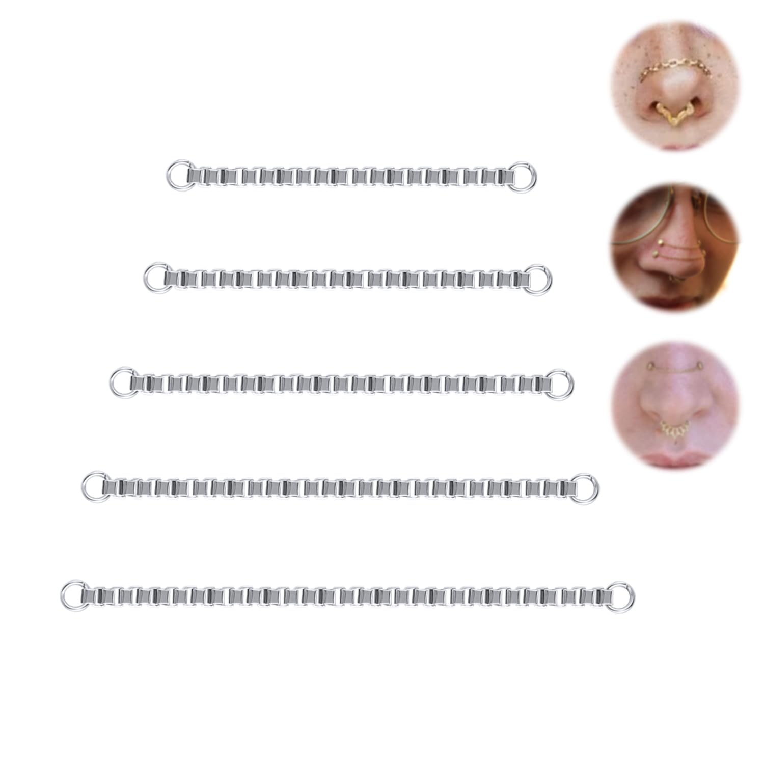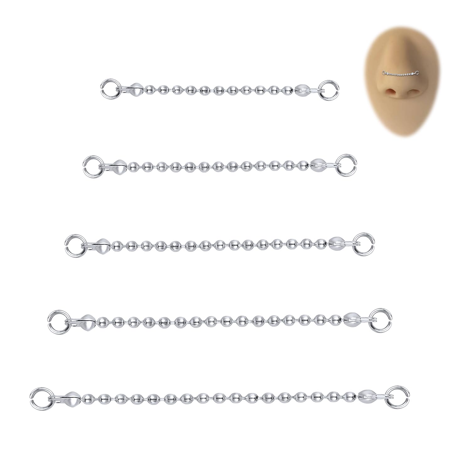 ★Packaging & Size: Five different sizes of nose ring chains, 32mm, 35mm, 40mm, 45mm, 50mm, meet your wearing needs for different parts. (This set does not include nose studs, nose rings, or earrings)