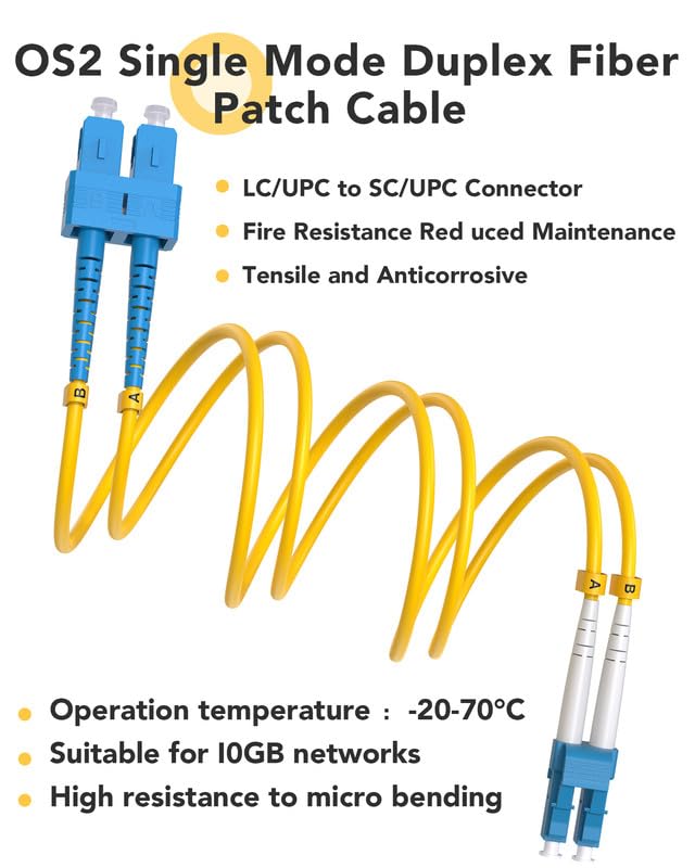 High-Speed Connectivity: Enjoy reliable Ethernet connections with our os2 sc to lc single mode fiber patch cables yellow jumper cord. Ideal for LAN, SAN, fast Ethernet, fiber channel, and more.