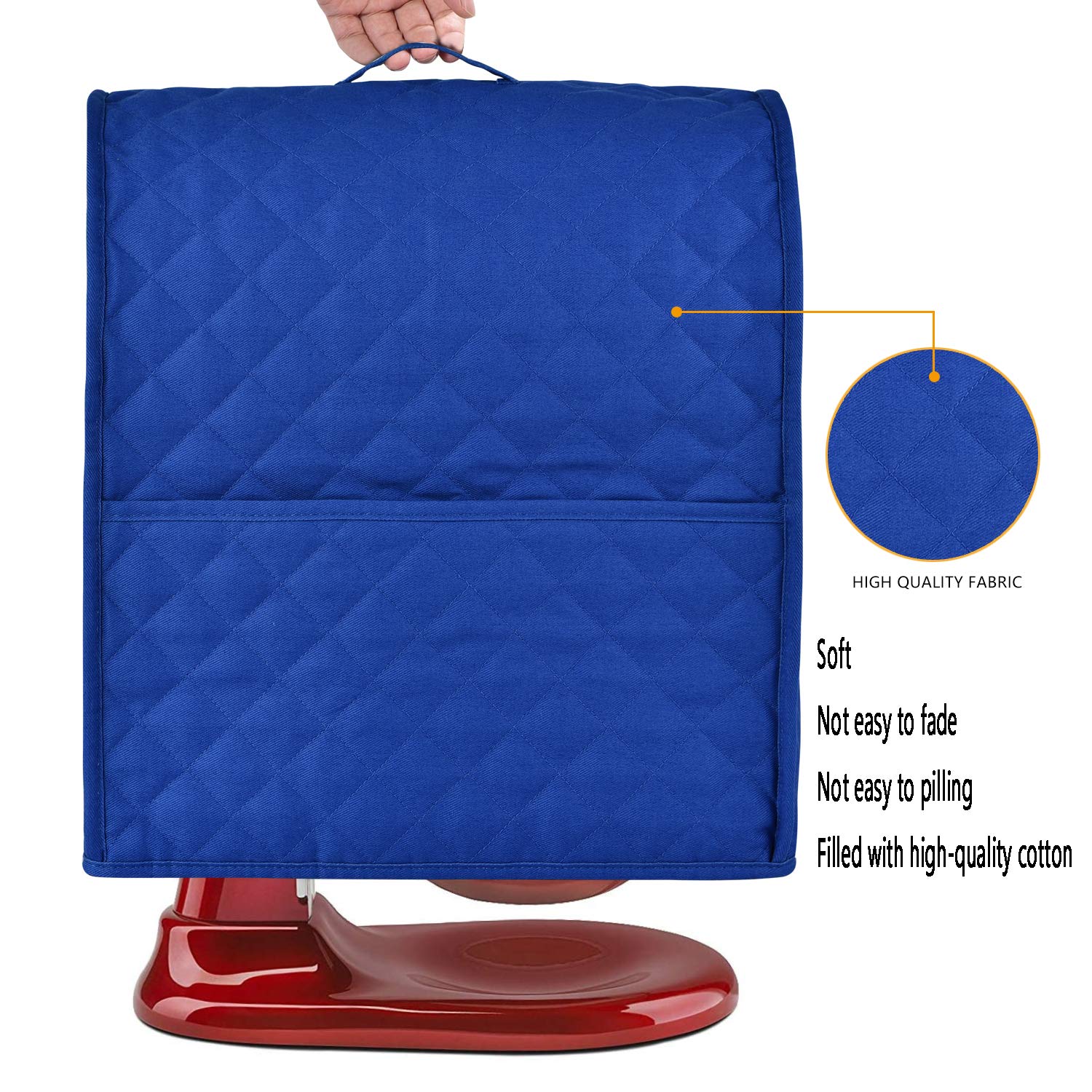 Protect your valuable stand mixer from erosive kitchen vapor, dust or lampblack! Sturdy, plain resistant cottom fabric with neat stitches effectively wards off dings, scratches, dust and food splashes, Perfectly fits your nice looking stand mixer and blends into the decor in the kitchen just fine. FEATURES 1.Well made of cotton fabric. Shrink resistant. Easy to clean. 2.The interior is lined.Machine washable. 3. One convenient "handle" on top is for easy removing. 4.CONVENIENT 3 Pocket DESIGN: 1 large front pocket and 2 side pockets provide plenty of storage space for keeping extras such as beater attachments and recipe booklets. Tips: Please do not use the product close to the fire. Package List: 1 * Stand Mixer Cover with a storage bag( Blue) Easy to Store Cover is packed in the mini size storage bag included.It is a great gift for Kitchen Appliances. Great Customer Service 30-day money back for no risk purchase. if you have any issues, please contact our after-sales team. We're always here to help!