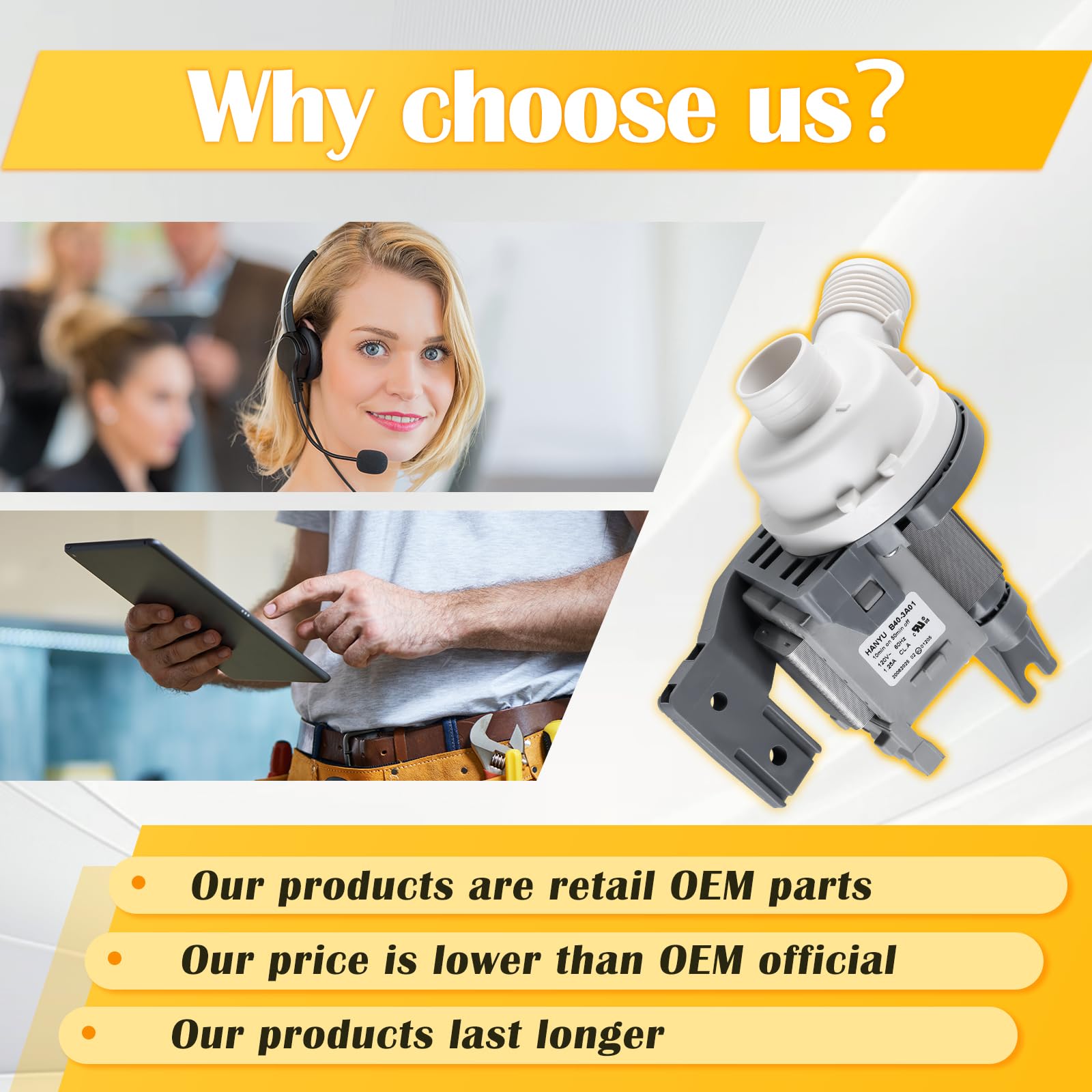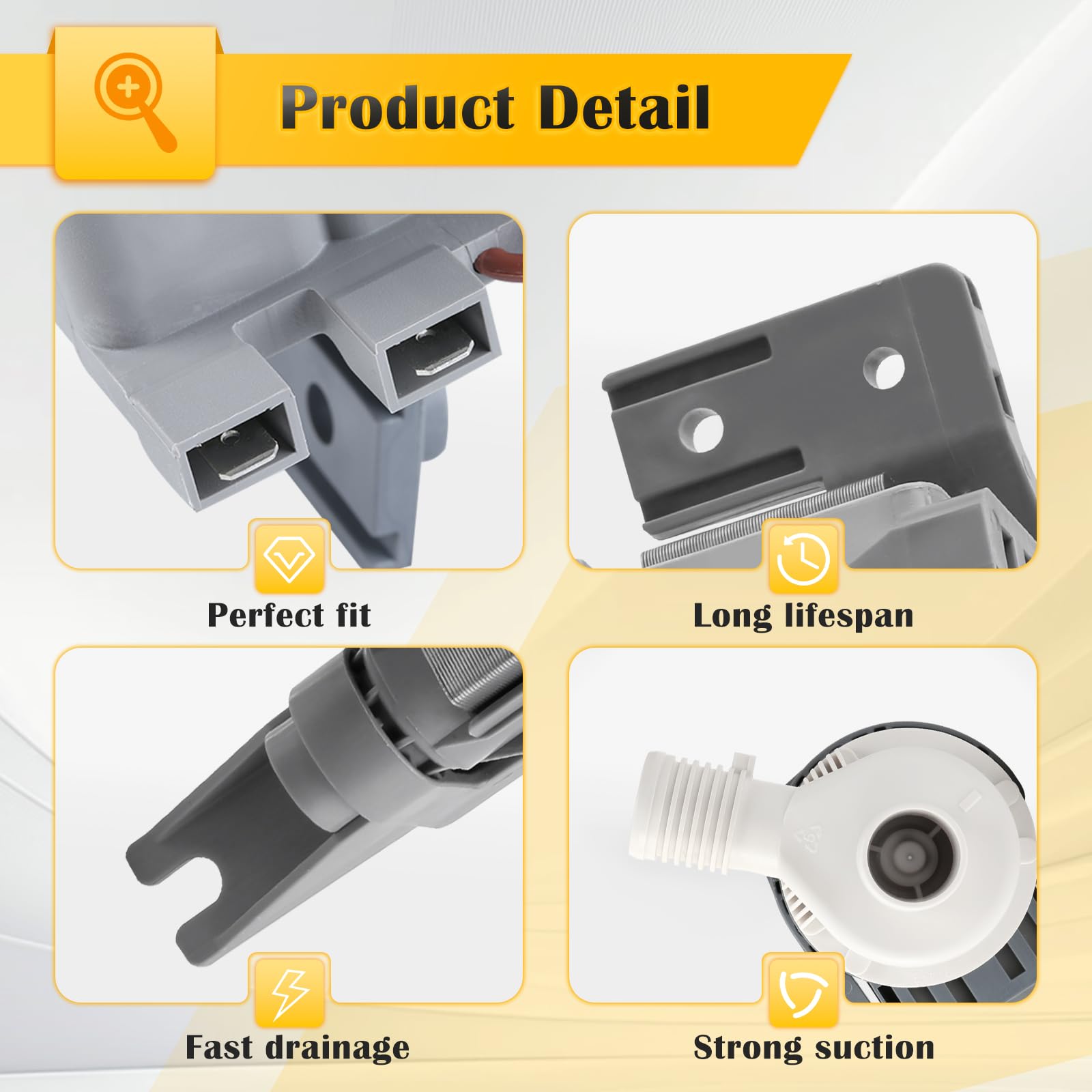【High Quality】 The W10581874 Washer Water Drain Pump is an OEM-quality part that resolves common washer issues such as water leaking, slow or no draining, unusual noises, and pump motor failure. Rigorously tested for durability and long-lasting performance
