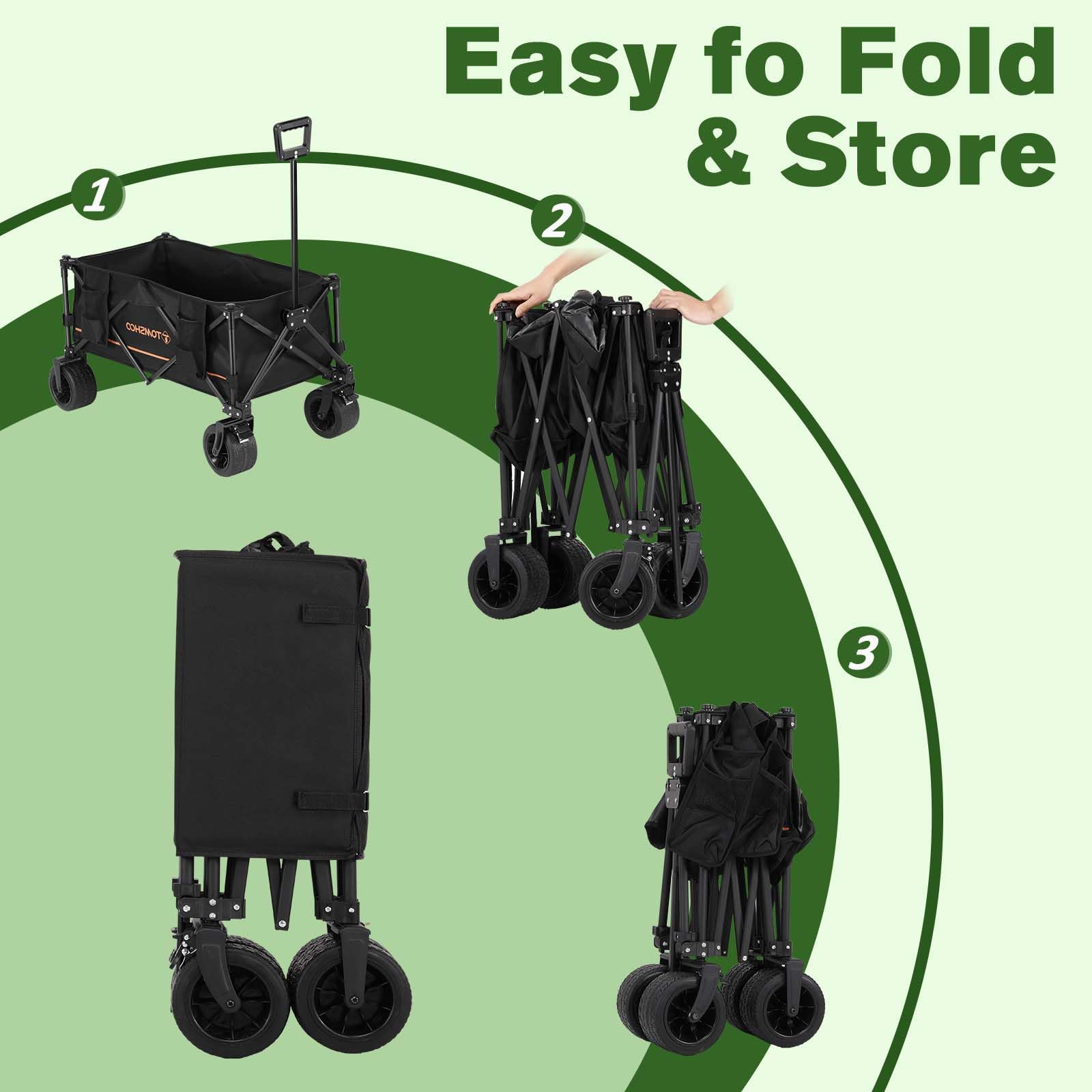 【Extra Space Add Convenience】: This wagon cart is foldable with 2 cup holders located, 2 additional storage pockets on the side. Upgraded storage pockets can fit lots of items in it, the largest storage space can reach 210L reducing the need for multiple trips & easy storage of team items.