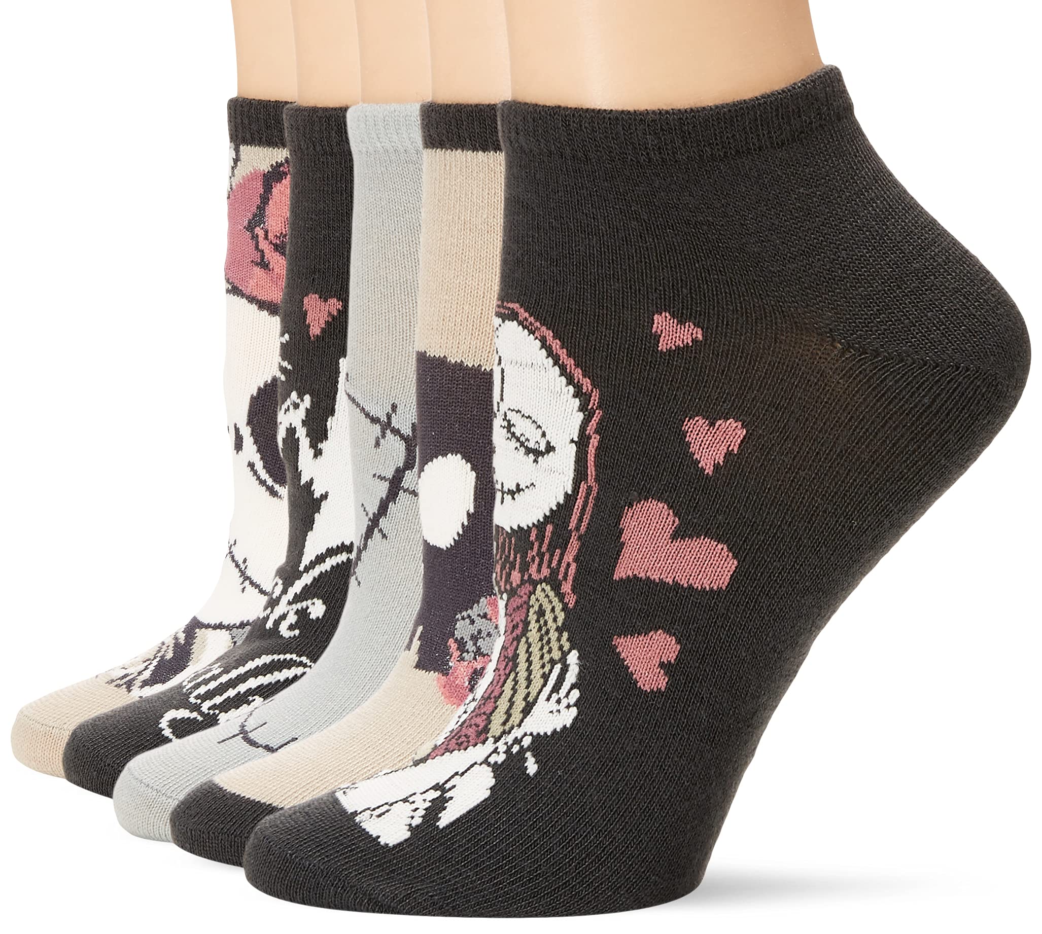Description This assortment of Nightmare Before Christmas themed socks includes a variety of 5 no show sock pairs with different prints. The fun designs are perfect for all Disney fans and will bring a smile to anyone’s face. These character socks are machine washable and are made of durable and breathable fabrics consisting of 98% polyester and 2% spandex. Five designs to a pack offer variety and flexibility. Wear your favorite character to brighten your day or the day of those around you. Easy to pull on, the socks stretch over the foot and stay comfortably inside shoes. No matter if you wear these socks under your office attire or with your favorite weekend ensemble, you are sure to impress and add a bit of fun to your wardrobe.