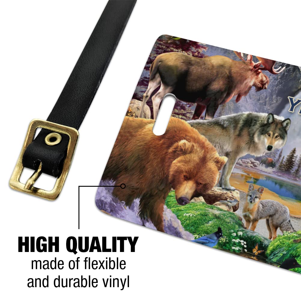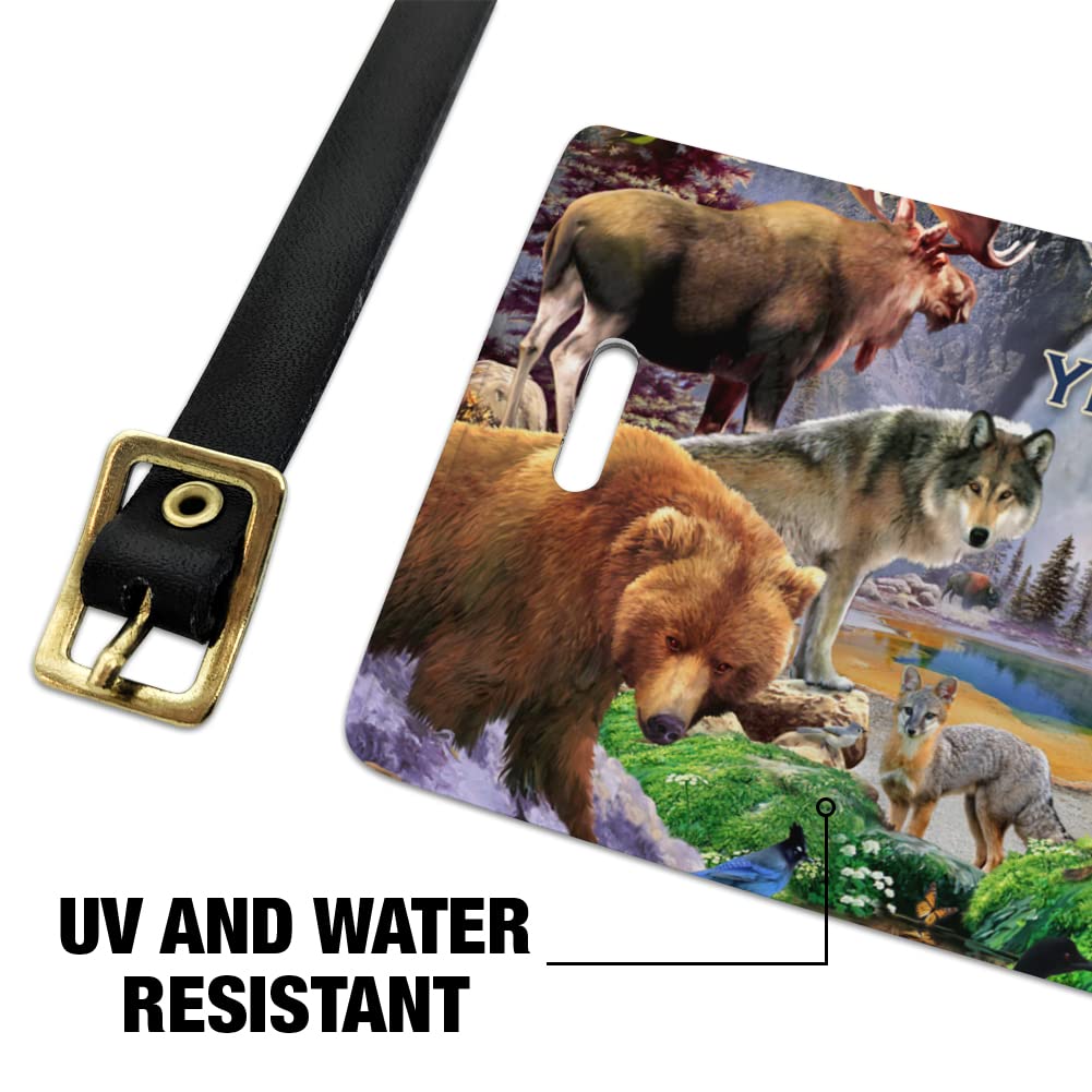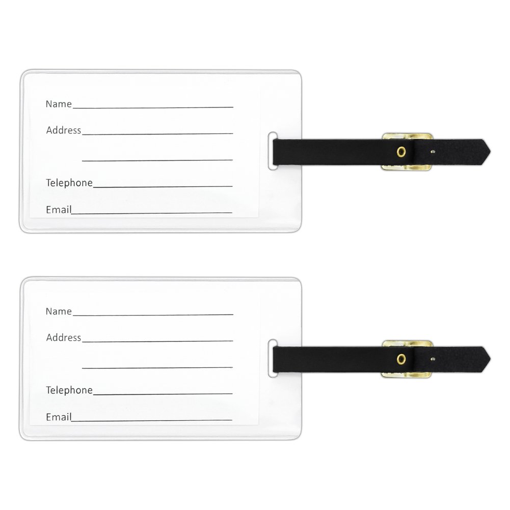 QUALITY MATERIAL: Our stylish tags are crafted from durable vinyl, and include an adjustable leather buckle strap. The featured design is displayed on one side, with a slip pocket on the other. Includes contact information card. Approximately 2.5" (6.4cm) x 4.23" (10.8cm) in size. Set of two tags.