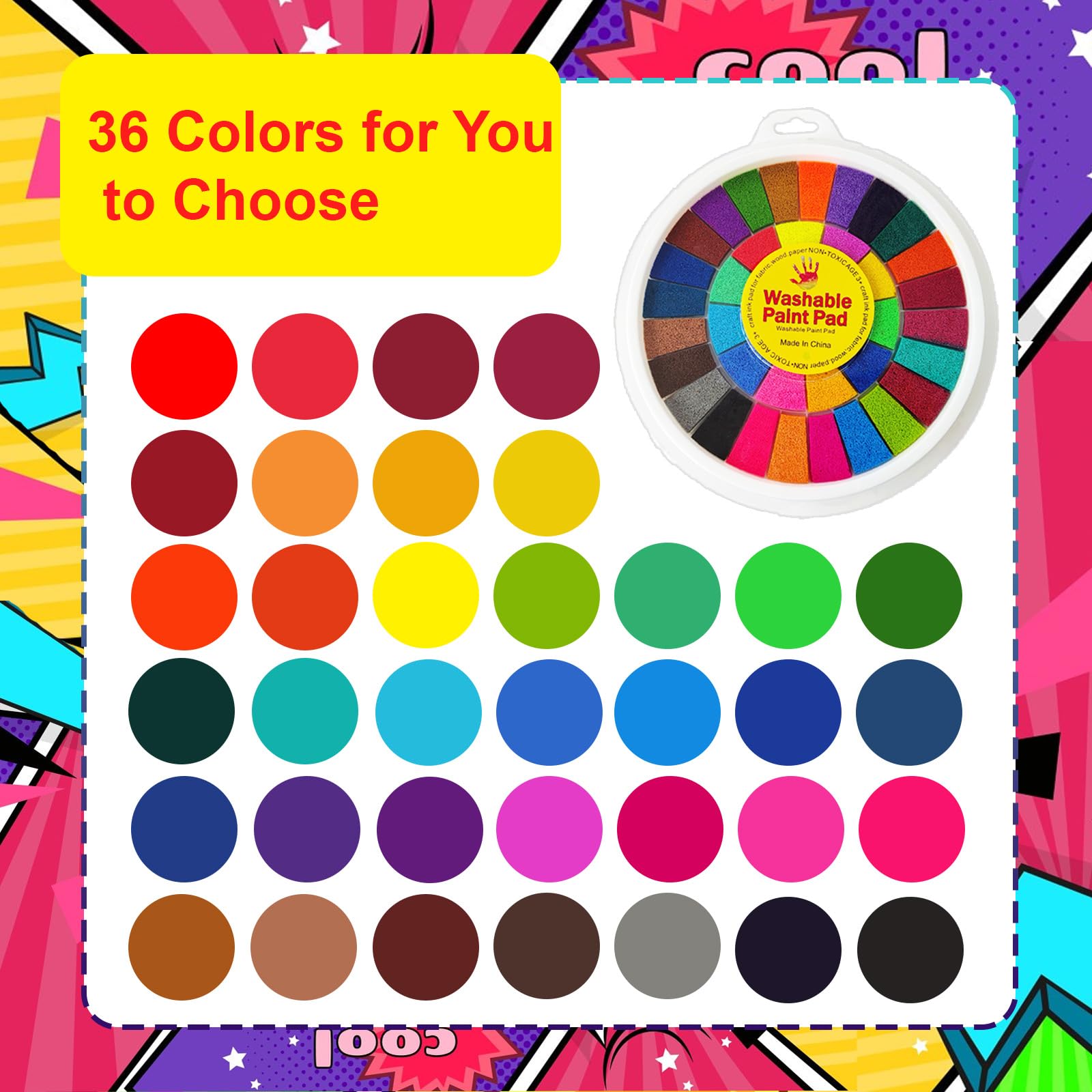 36 Colors Finger Paint:washable finger paint kits in 36 different vibrant colors,more colors can be remixed to create new colors and useful to teach your kids about recognizing colors