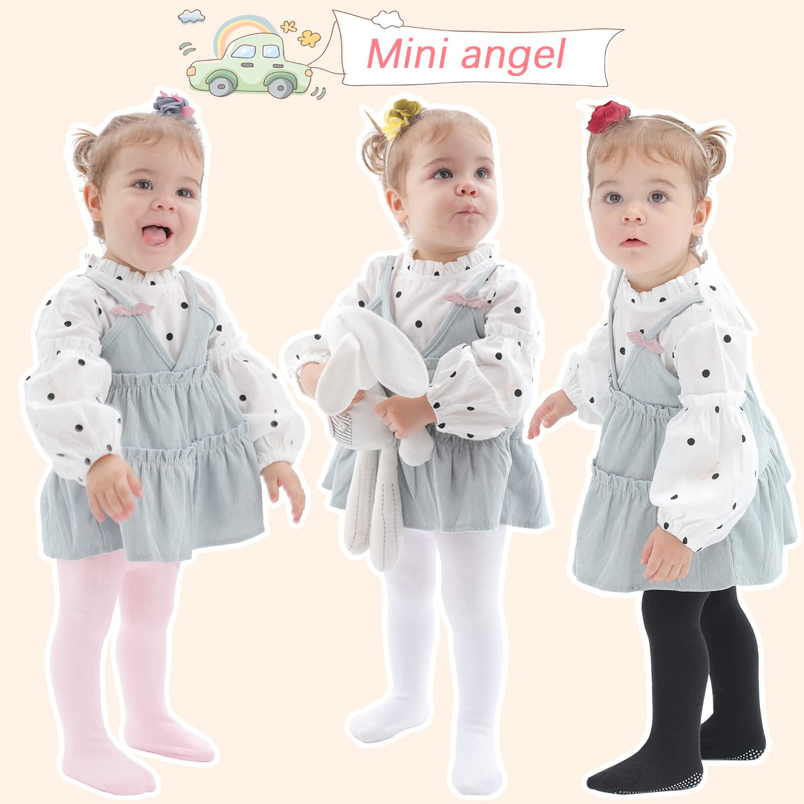 Seamless Toes & Ribbed Waist: Mini angel baby girl tights feature a manual seamless toe for added softness and unparalleled comfort. High elastic waistband can hold up well and reduce pressure on little baby's belly. Colors can stay true and won't fade.