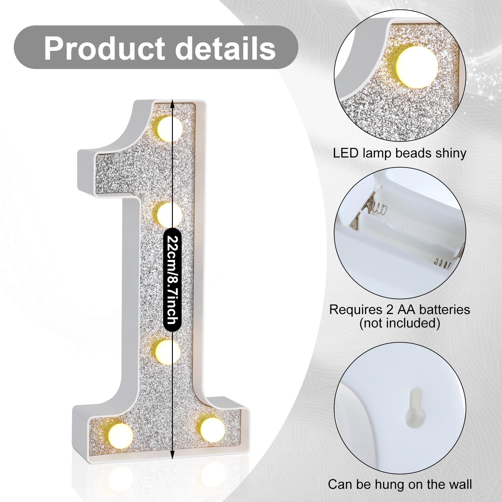 Easy Operation: the silver light up numbers are easy to operate. They have switches at their back for manual control, just need 2 AA batteries to be installed in the lights, but please pay attention to that batteries are not included. Besides, [1] and [6] light up number lights are designed with hooks in their back, which allow you to place them on the table or easily hung them on the wall