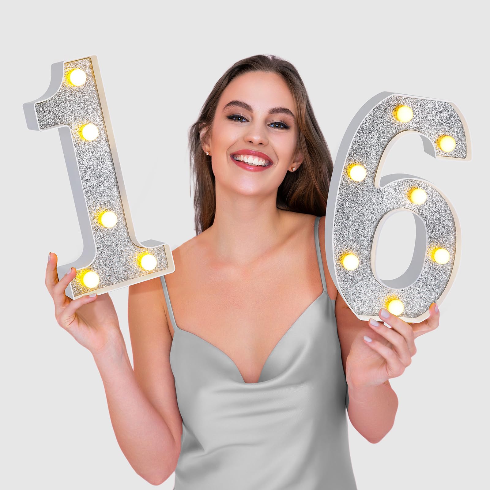 Birthday Party Supplies: you will receive 2 pieces of light up numbers, namely number [1] and number [6]. Specific style and classic silver color can easily meet your party decoration needs, putting them on your table will definitely make your party eye catching and more attractive