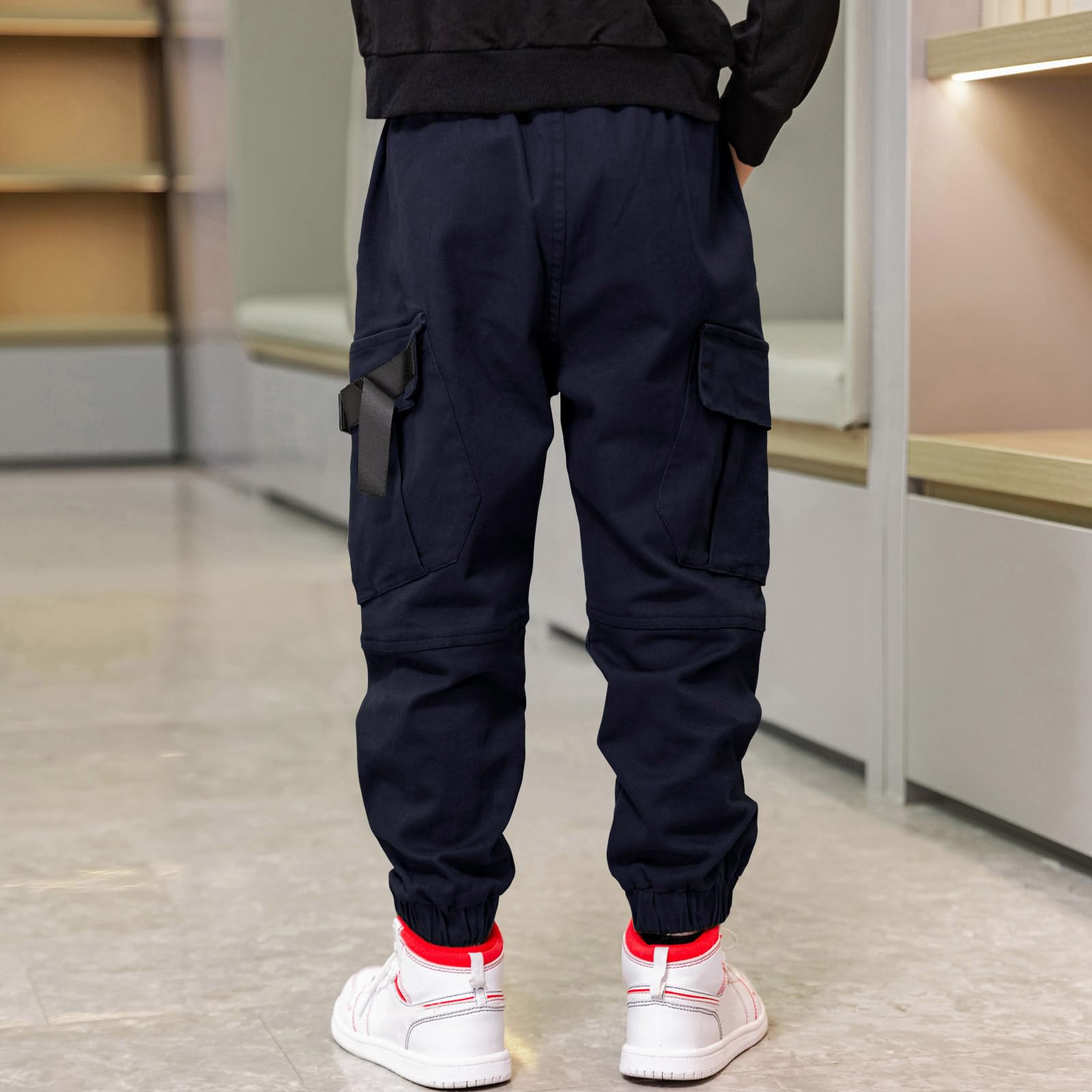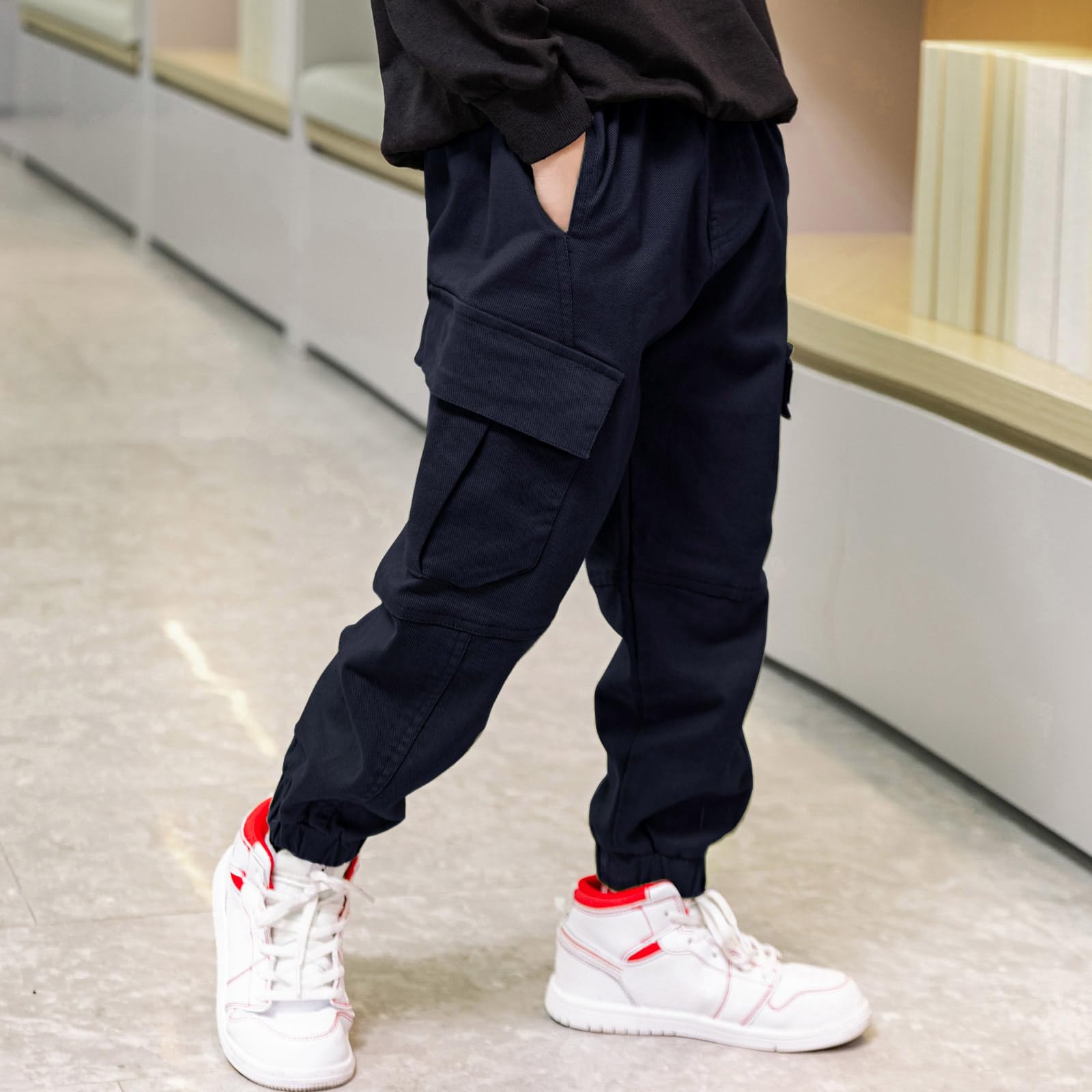 Cotton Material:Soft breathable twill abric elastic cuffs for casual comfort.Boys elastic cargo pants bottoms cool clothes made of 100% cotton, soft and breathable, not easy to wrinkle.The thickness of the fabric is moderate, comfortable and breathable, boy will not feel sultry discomfort when you wear the cargo jogging pants for long time.