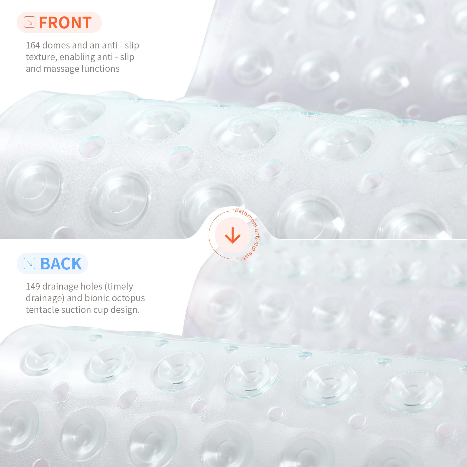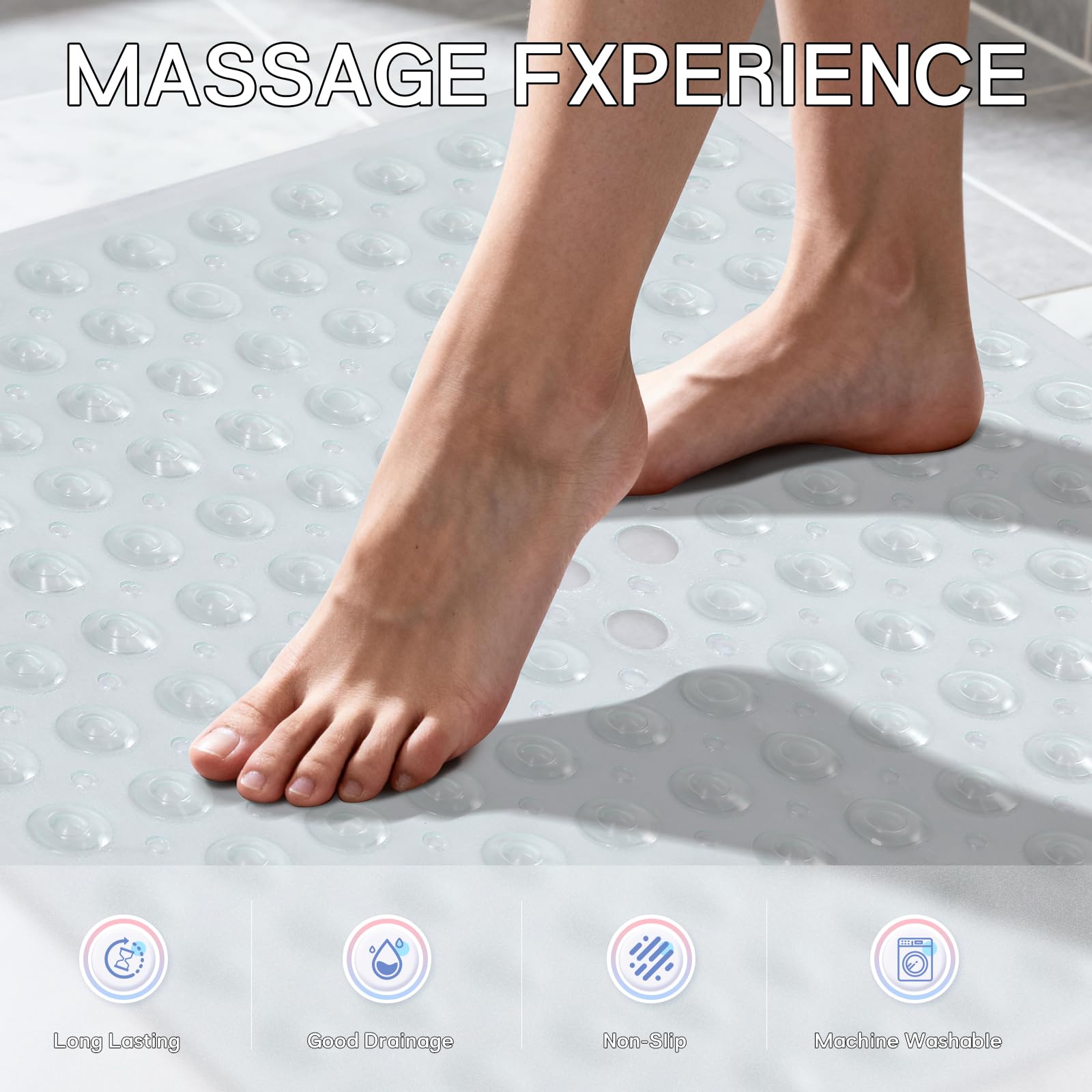 FUNCTIONAL BATHROOM MAT: Our versatile bath mat features a domed design resembling pebbles, offering a massage-like experience during shower time. The irregular texture on the surface enhances friction and prevents slipping. Additionally, with 149 small drain holes, water circulation is optimized and smoother drainage.