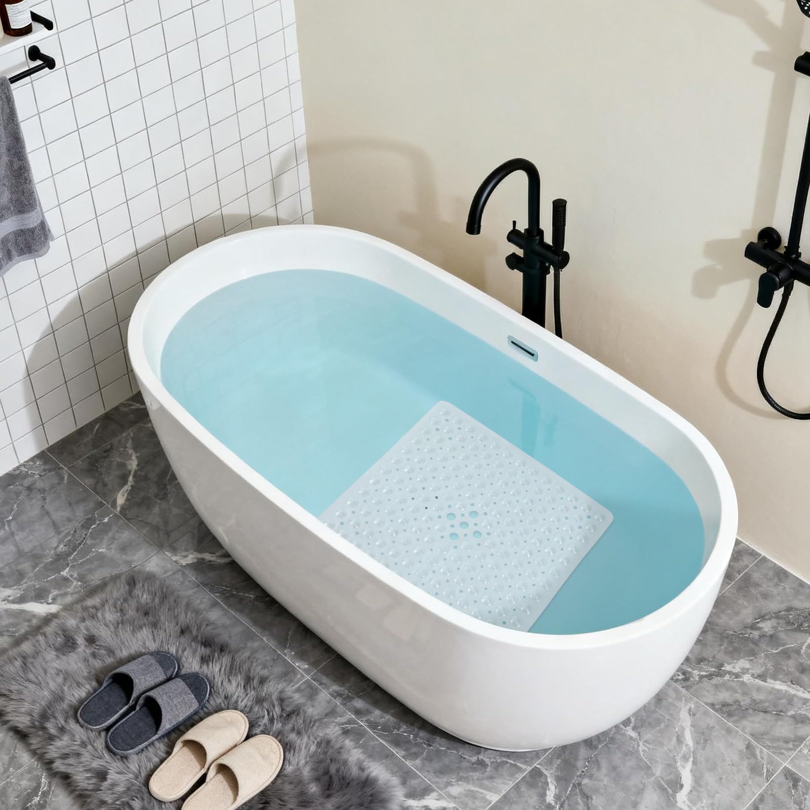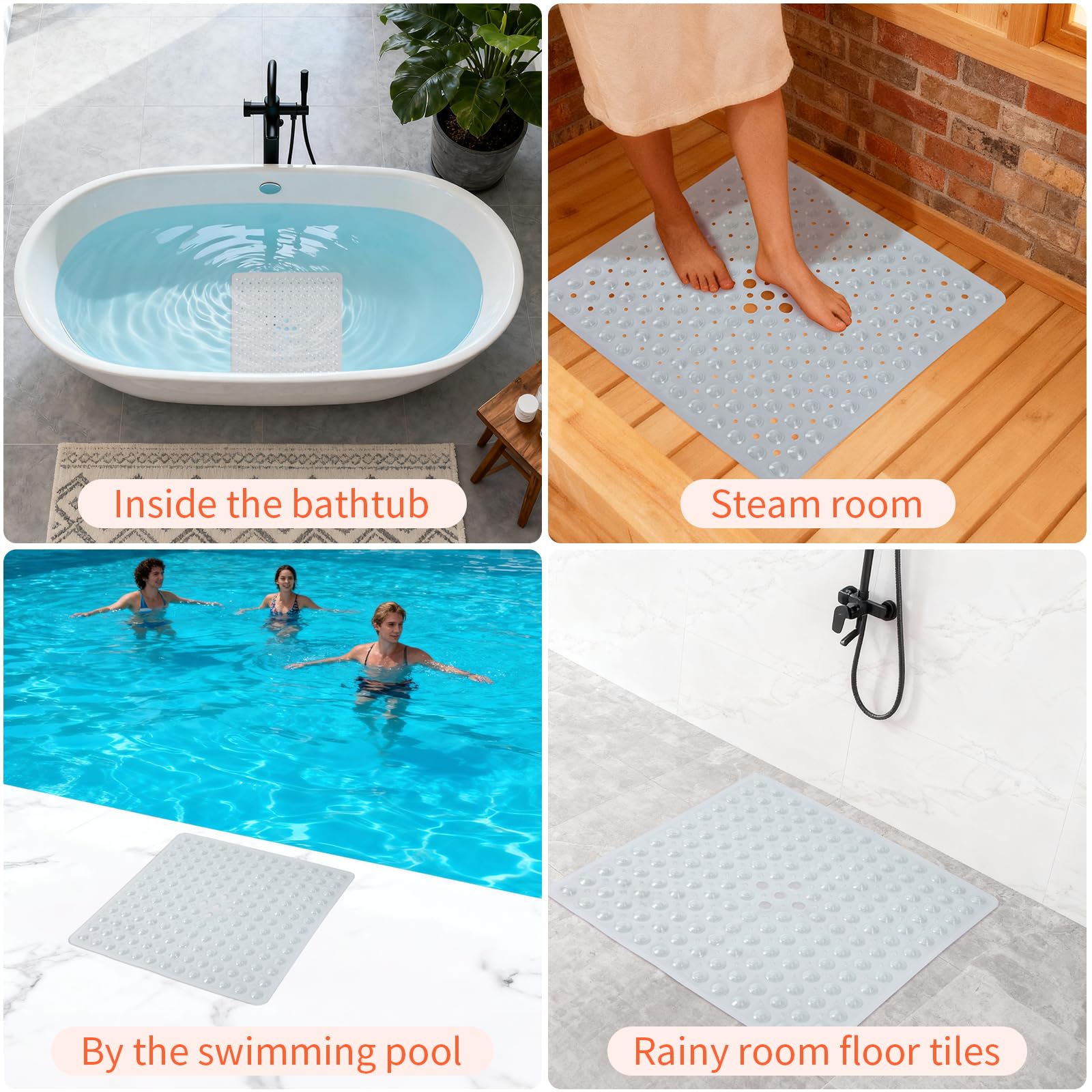 NON-SLIP LARGE BATH MAT: Our non-slip large bathtub mat offers superior coverage with its 20.8×20.8 inch(Approximately 53×53cm, with an error of about 1cm) size, maximum coverage for the bathtub floor. Equipped with 164 special large suction cups, this mat securely stays in place on smooth, clean surfaces, making it ideal for home, spa, sauna, gym baths, and showers.