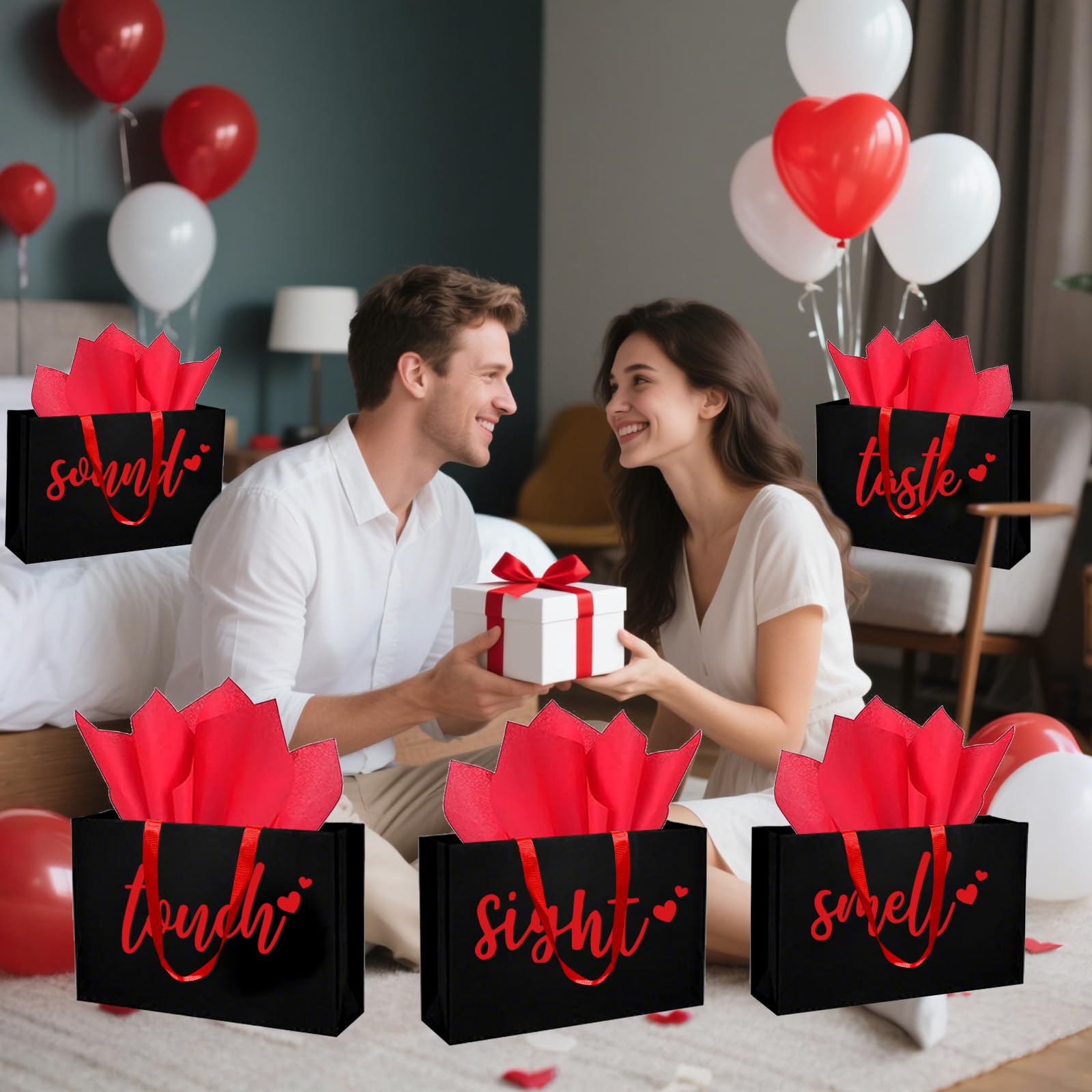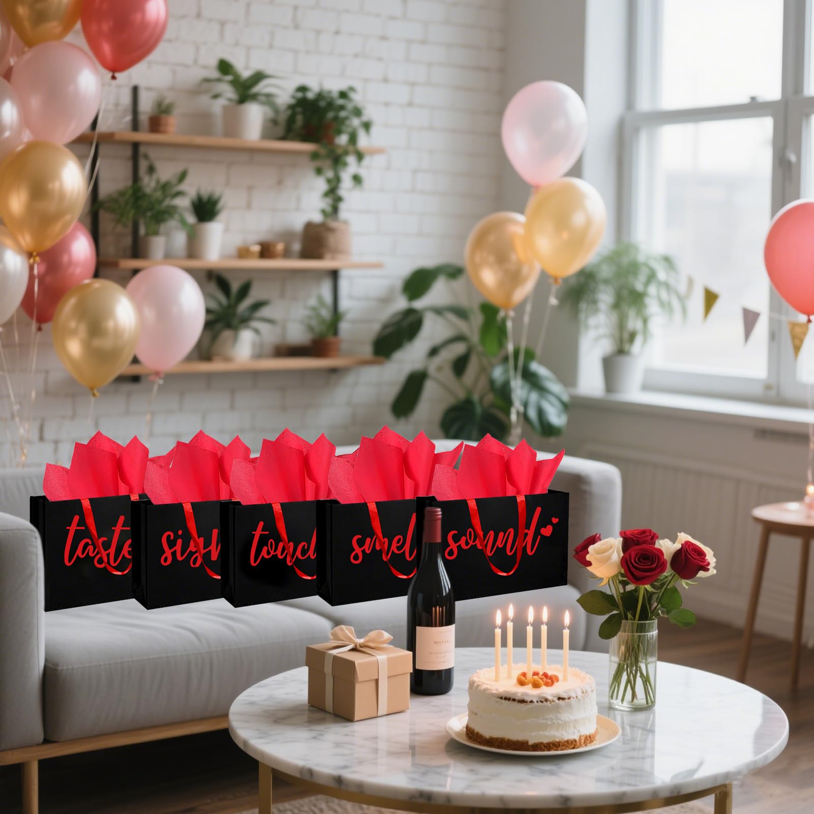 5 Senses Gift Bags Five Senses Gift Bags with Tissue Paper for Anniversary, Valentine's Day, Birthday Five Senses Gift Bags for Him Husband Boyfriend Features: These 5 senses gift bags add a unique and personal touch to your presents, allowing you to convey your sentiments through each of the five senses. Whether you're celebrating a birthday, anniversary, or any special occasion, these bags are the perfect way to show how much you care Specification: Material: thick cardboard paper Color: as the picture shown Quantity: 5 Pieces in total Package Content: 5 x gift bags NOTE: Please allow 1 - 2 mm error due to the hand measurement