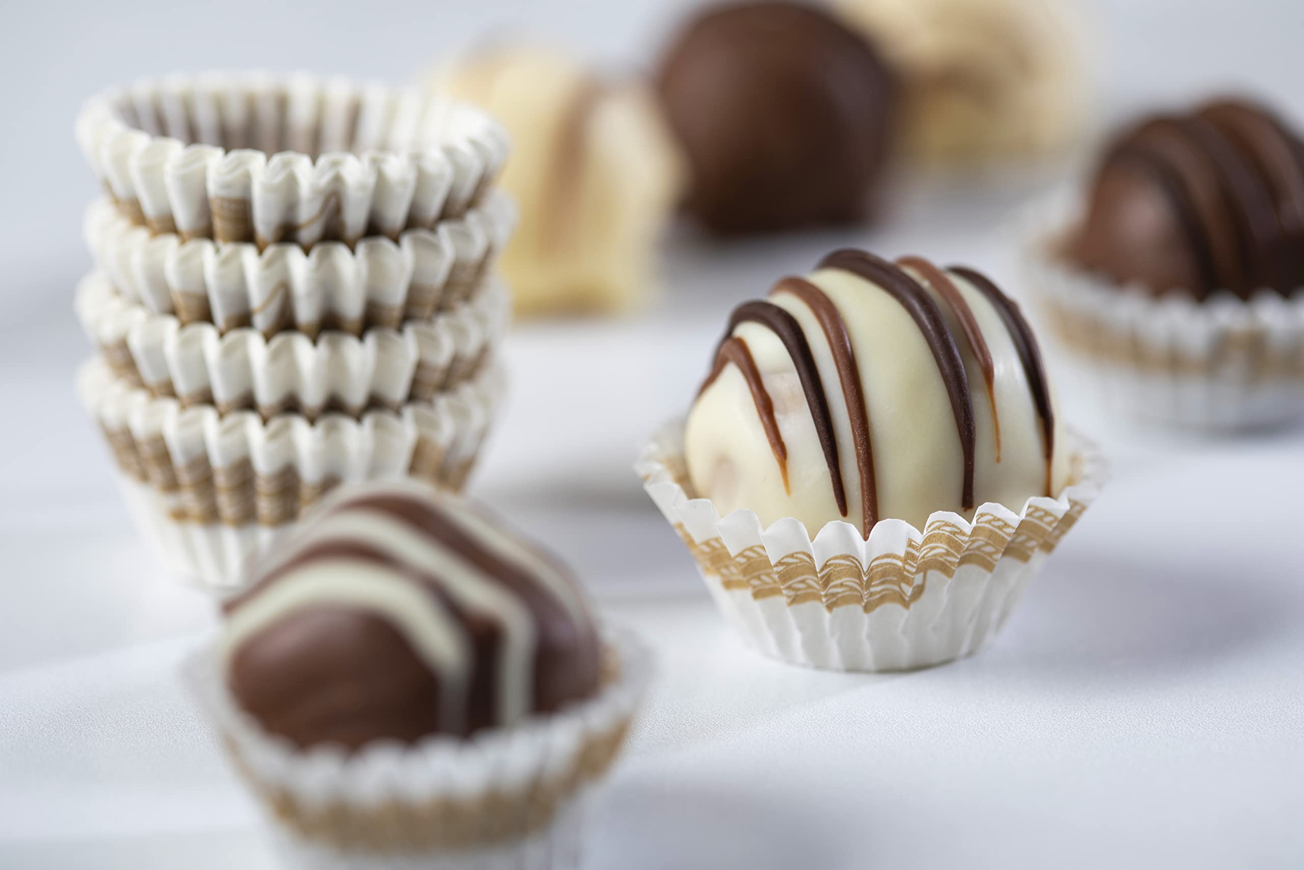 Glassine Chocolate Candy Paper Cups - #6 - 1'' x 3/4'' - Pack of 200 - White Gold Ribbon