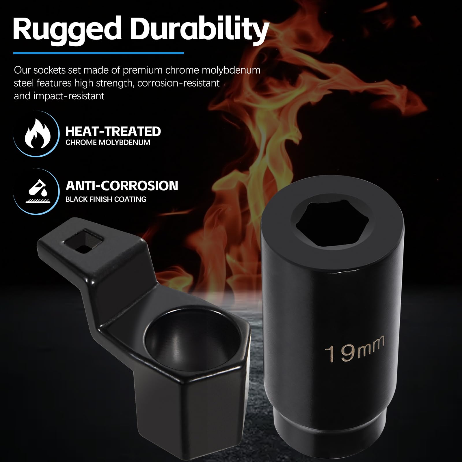 Use of 19mm Socket --- 19mm Crank Bolt Socket is used with 1/2" drive tool, perfect for impact wrench. Designed with 6-point contact and more than 3 times of the standard socket mass to direct more energy and increase torque to removing the bolt