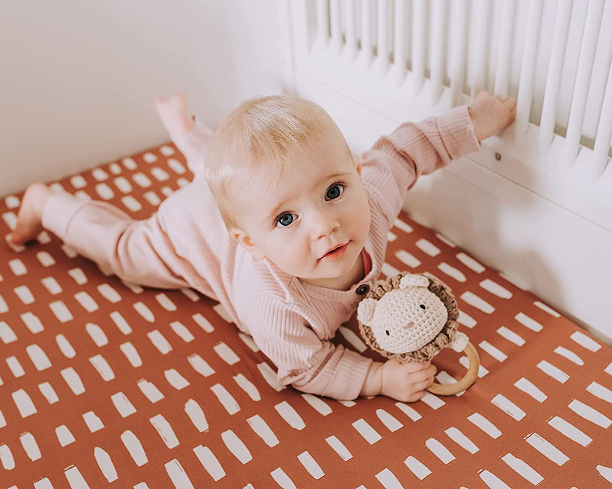 π¦ INCREDIBLY SOFT & BEAUTIFUL β This beautiful custom pattern is printed on the most luxuriously soft cotton blend. Thicker elastic and deeper pockets ensure that our crib mattress sheet will NOT slip off the mattress. Youβll feel the incredibly soft, yet stretchy and silky material as you pull the sheets and snug, creating a safe and soothing space for your baby to sleep.