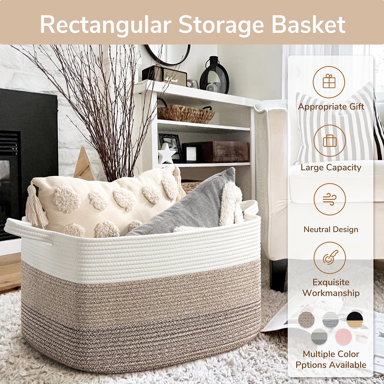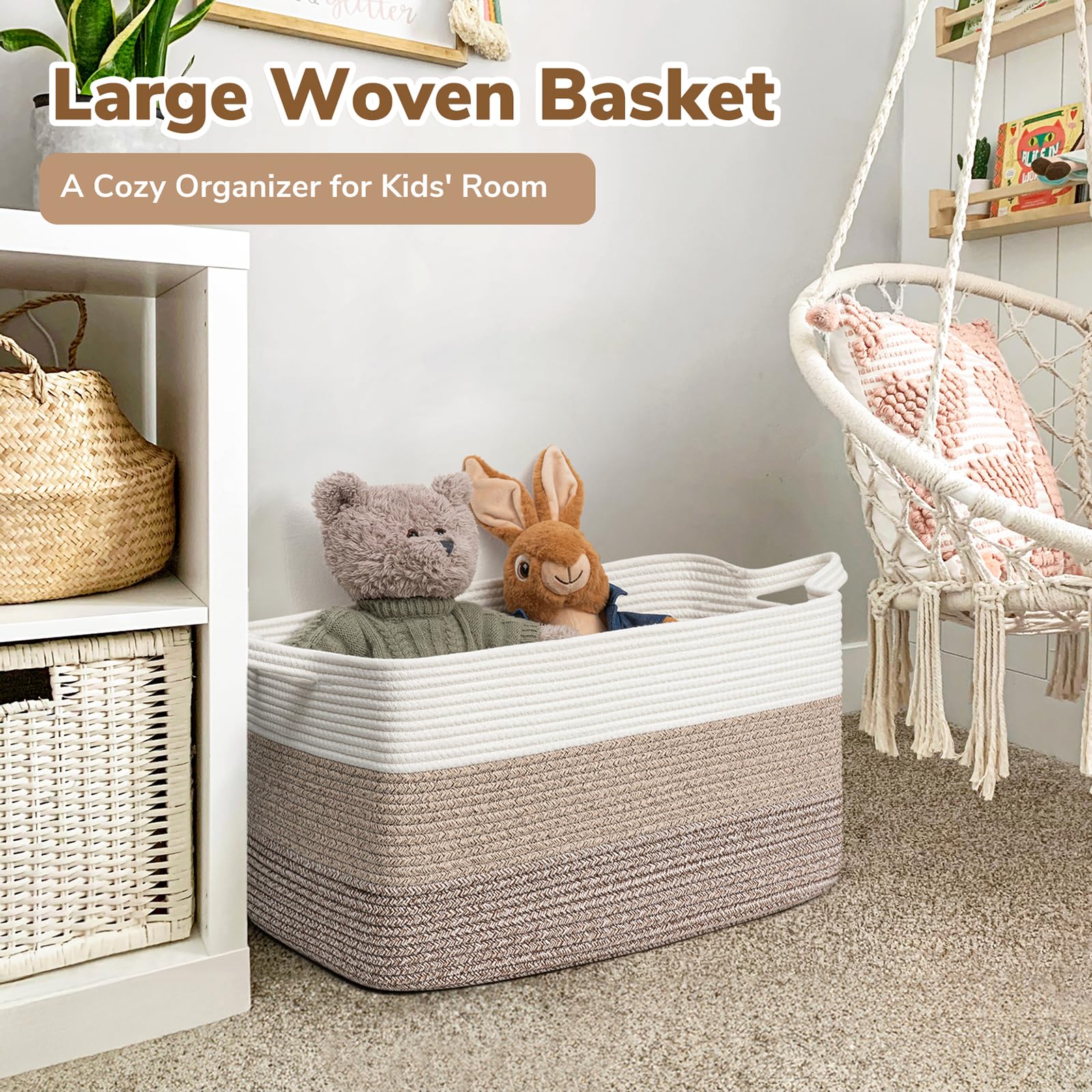 Multifunctional Storage Basket: With a neutral color scheme, our woven decorative storage baskets blend seamlessly with any room decor. Use them to store extra throw blankets in the living room, kids' stuffed toys in their room, towels in the bathroom, and clothes in the laundry room