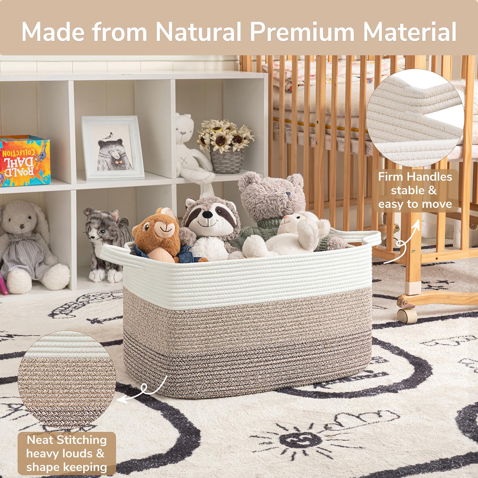 Durable and Soft Material: Our cotton rope basket is made of thick, durable fabric that is good for babies, kids, and pets to touch. It is also no chemical smells, making it perfect for storing a wide range of items