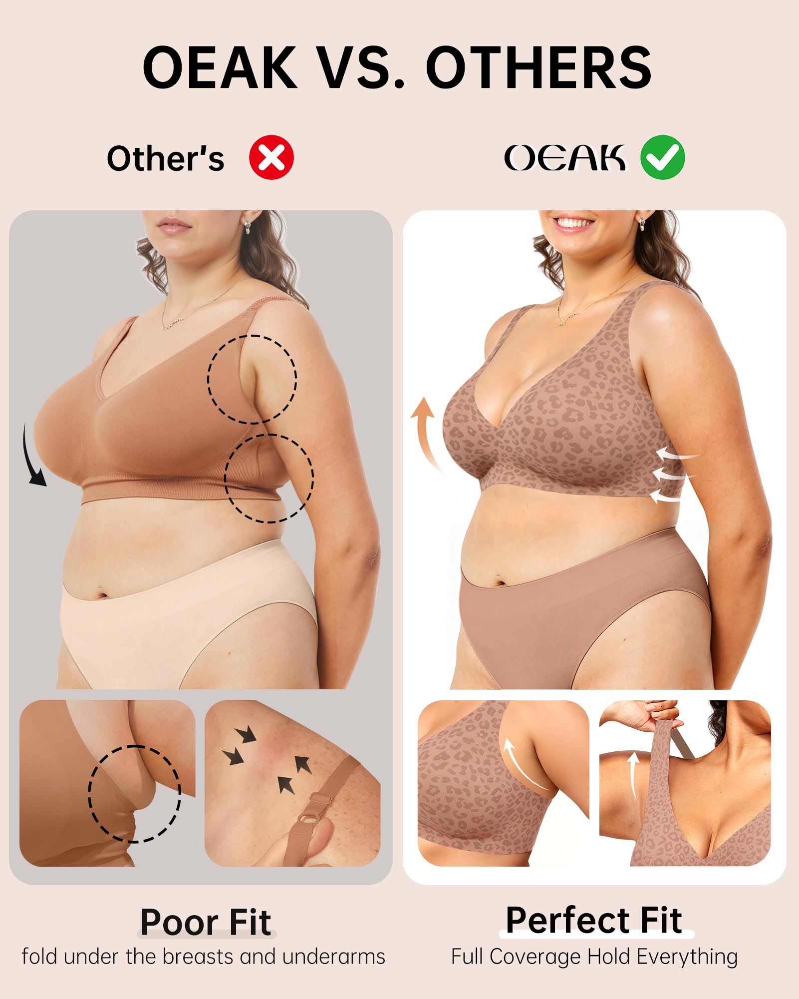 Stylish Deep V Bras for Women - The OEAK Wireless bra adopts a cute plunge design, which gathers and lifts your breasts, setting off the breast line to make your breasts more upright, round, and perfectly shaped. It showcases the seductive collarbones and cleavage under t-shirts and other clothing. The seamless Deep V bras are particularly effective in showcasing a beautiful neckline, making them ideal for wearing under low-cut tops and dresses, thus making your outfit simple and elegant.