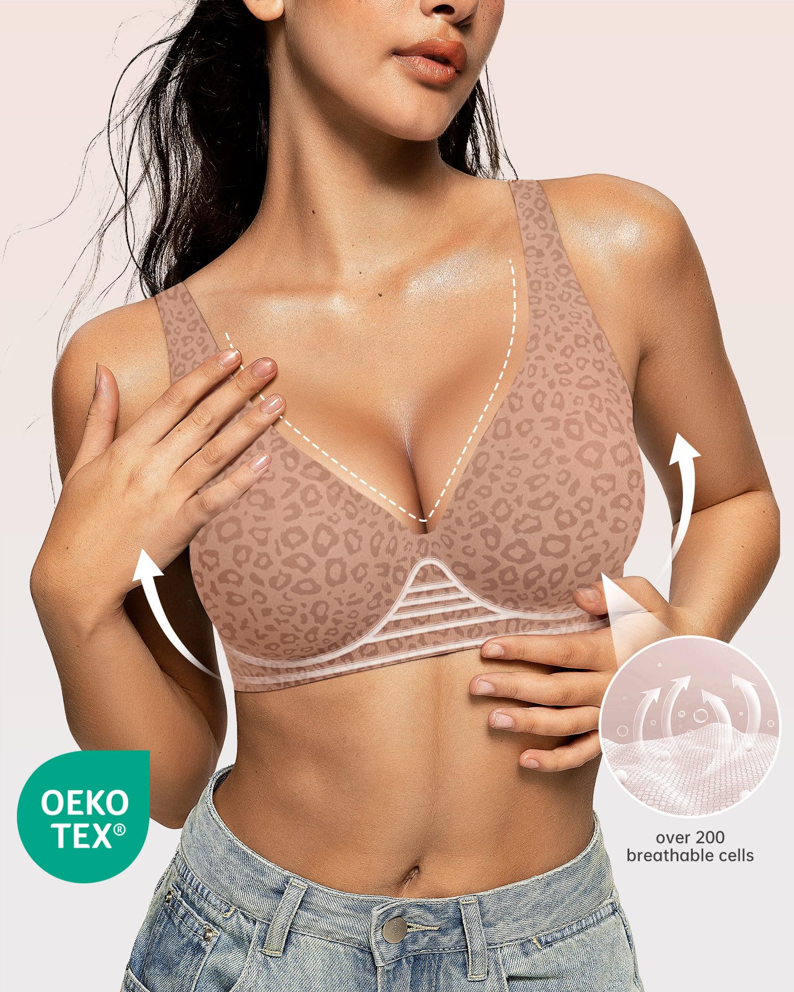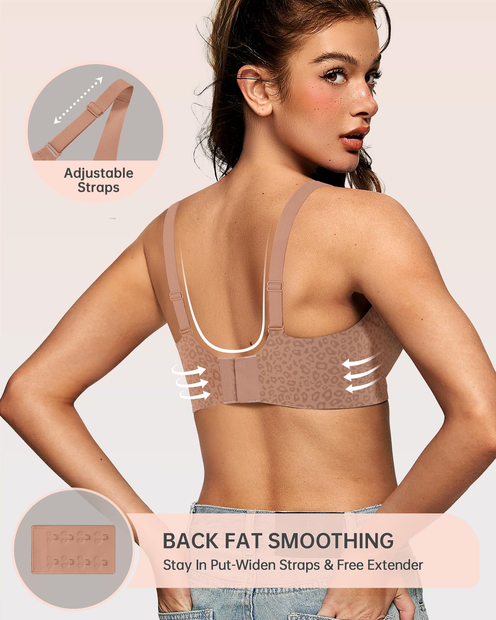 Full Support Bras - These no-wire bras feature a "W-shaped" and innovative 3D supportive technology formed by liquid jelly bands, providing full support for your breasts and creating a full, natural-looking chest without the discomfort of a traditional underwire bra. The widened side of the bras with jelly bands can effectively conceal excess fat.