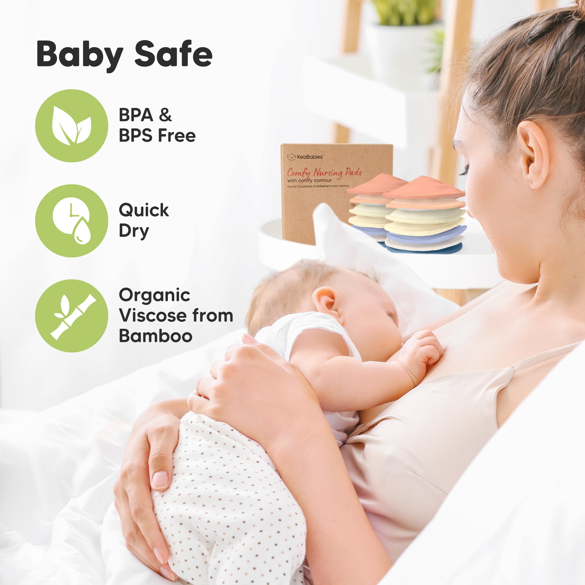 Great For Leakages – Leakage is a thing of the past with our 4-layer nursing pads. KeaBabies Nursing Pads feature three layers of ultra-absorbent viscose derived from bamboo, sealed with a protective waterproof outer layer for extra security on the nipple pads. Tip: If you experience a heavy flow, please replace breast pads every 5-6 hours.
