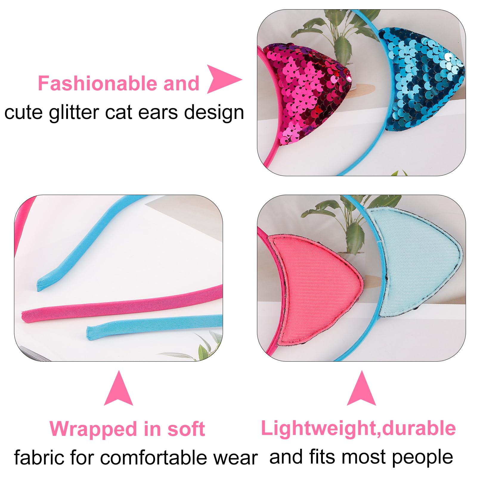HIGH QUALITY MATERIAL: KICOSY cat ears headbands are made of high quality material, not easy to break, lightweight and well made. And our hair bands are lightweight and portable, small size and light weight, you can enjoy wearing them anytime and anywhere. Meanwhile, it is easy to store, you don't have to worry about these hair bands fading.