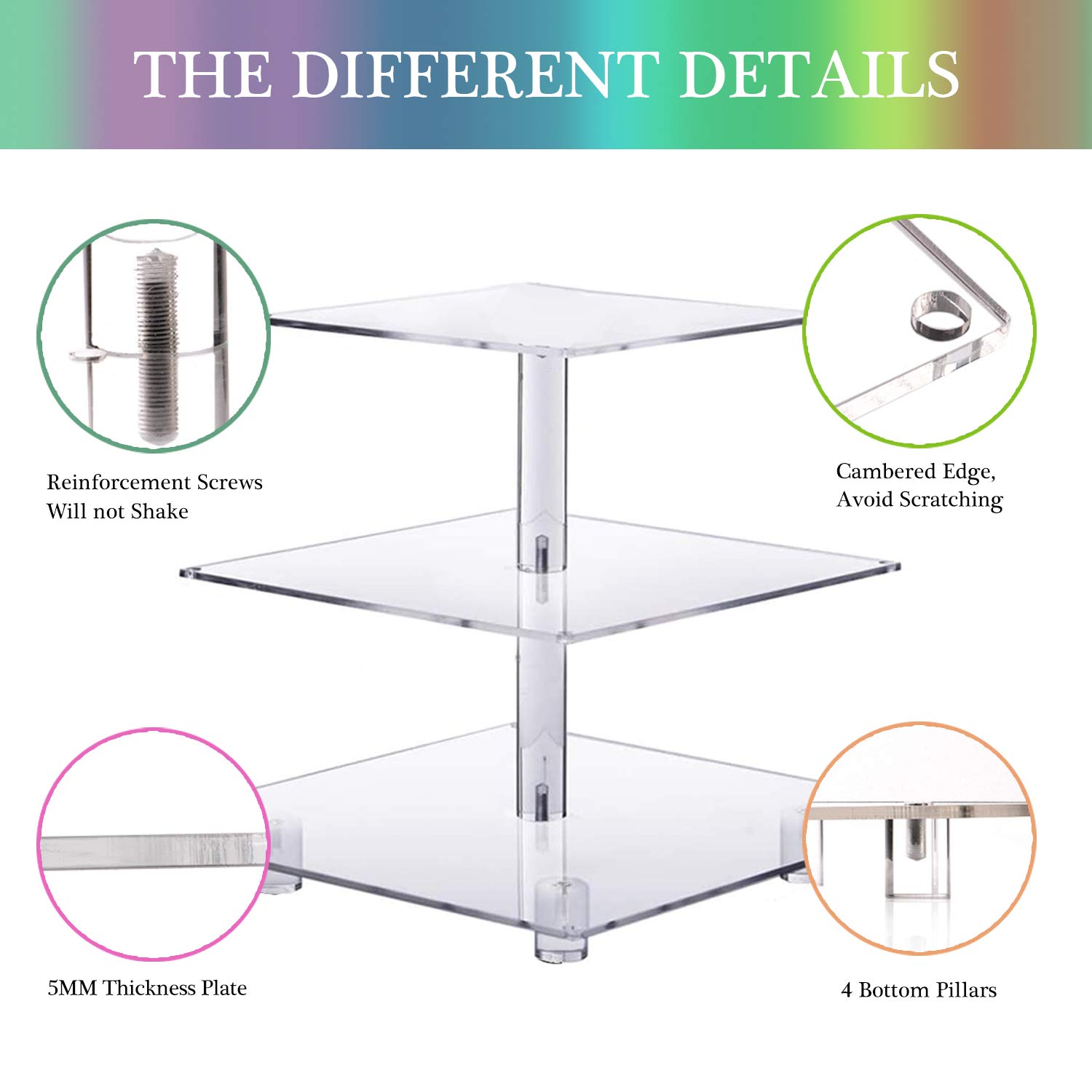 PREMIUM DESIGN: Our cupcake stand has there acrylic plates with 4.7” distance between them. You can remove any of the superior plates and reassemble them freely. Each pastry rack is made with premium 4 mm thick acrylic, being very durable and resistant.