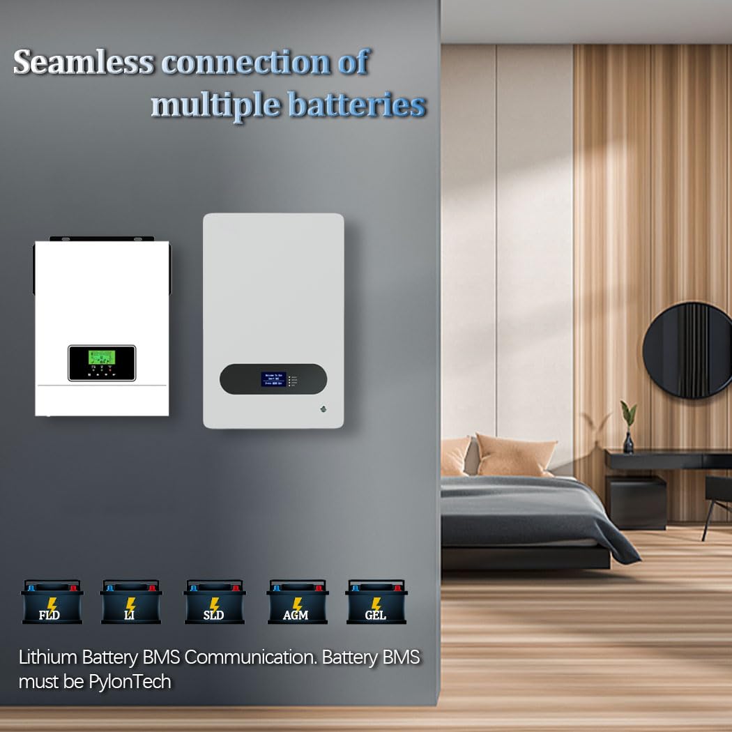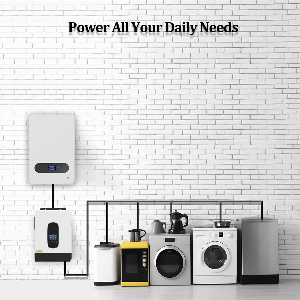 【Not for 120V】This solar hybrid inverter in some parts of the US: does not support parallel operation, nor does it support split phase operation! (Single phase/hot leg 230V output, not 110V AC output) For 110/120V US home appliance equipment, you can simply add a converter (not included) to step down the 220/240V AC power to 110/120V AC power, then your 110V home appliances can also be used at the same time.