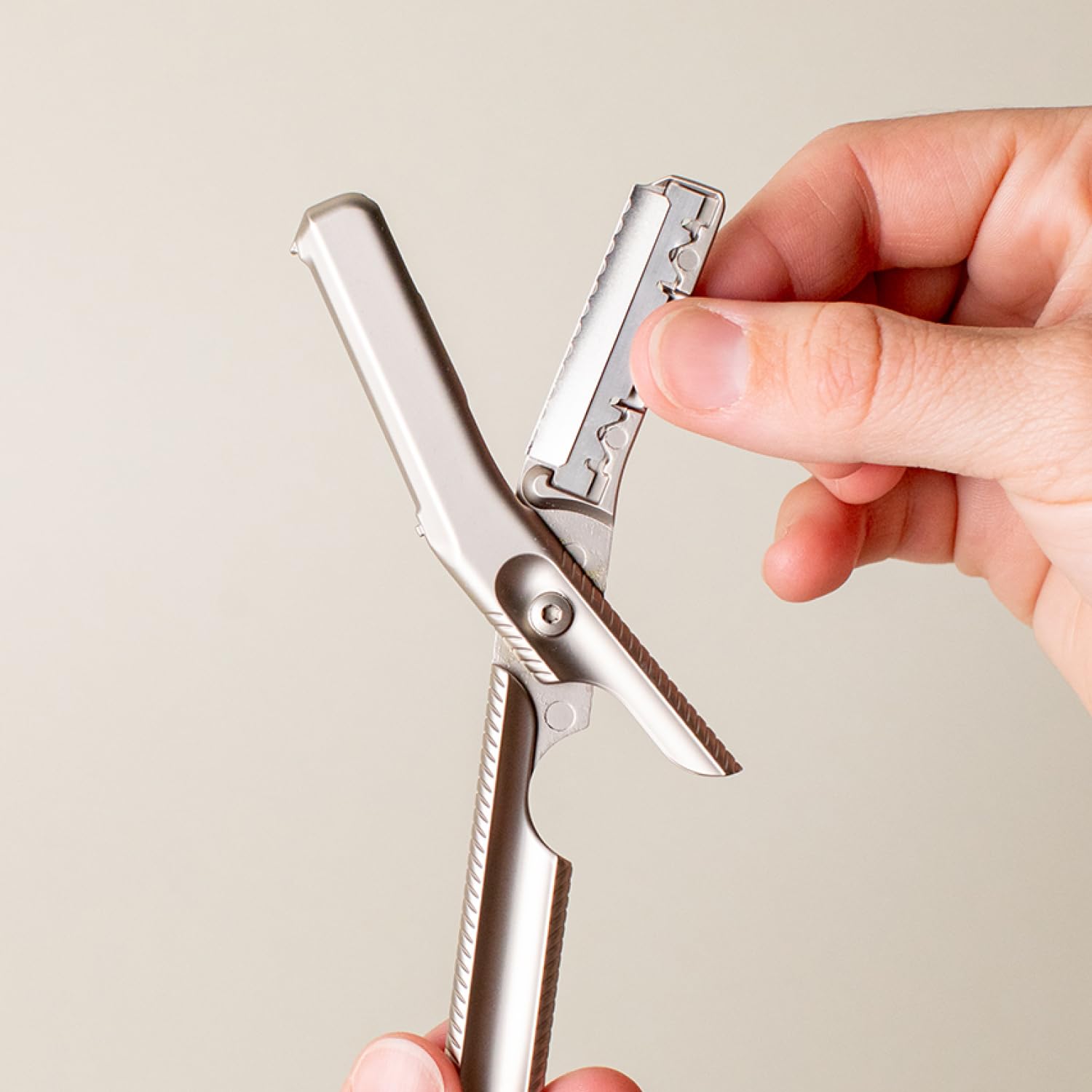 Easy Refill Loading: First, flip your Leaf Dermaplaner head open. Next, install a scalloped blade-guard. Lastly, insert a fresh blade into the blade-guard and you’re ready to go. The blade-guard must be used at all times when dermaplaning with the Leaf Dermaplaner