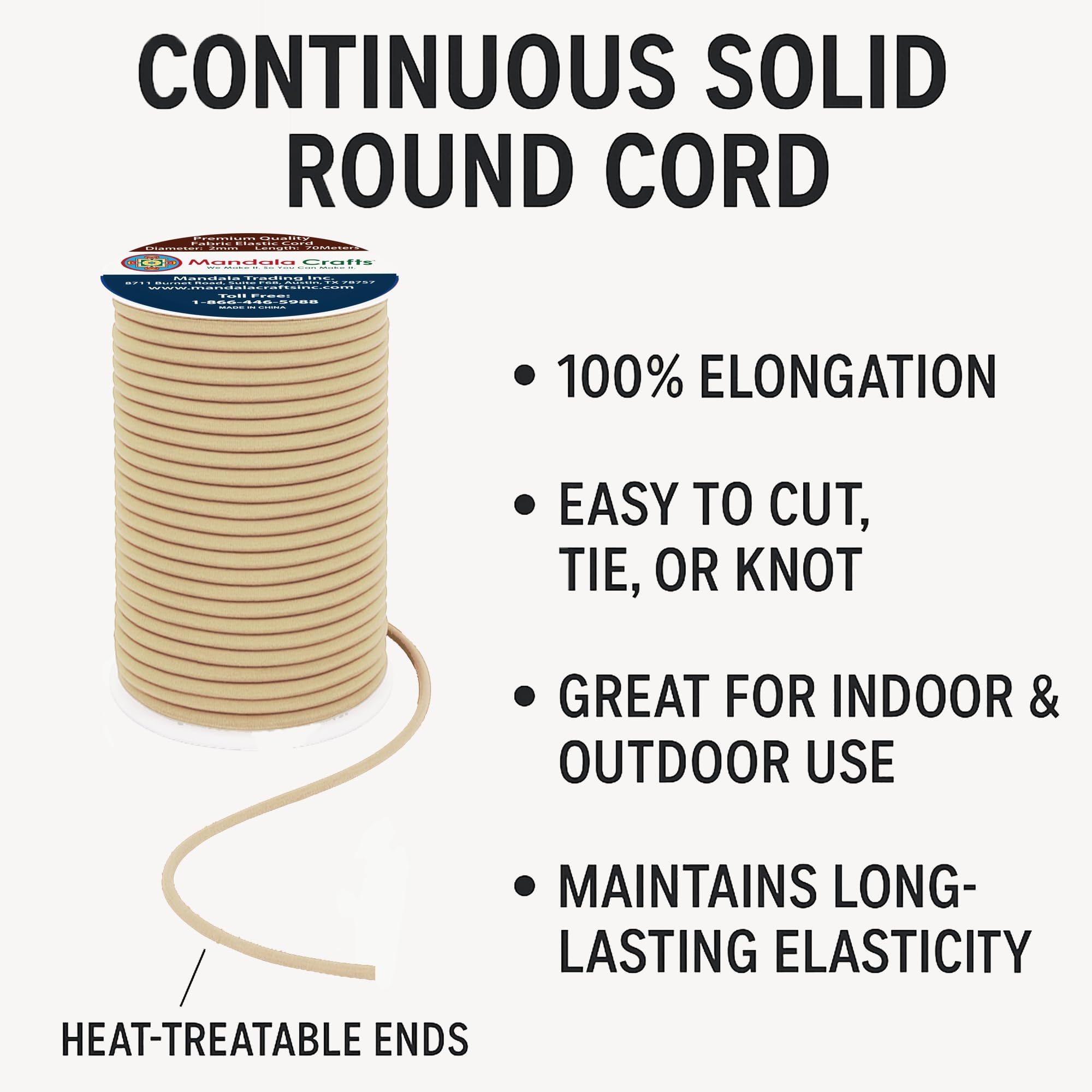 Bulk Stretchy Fabric Elastic Cord 2mm Stretch Strings Spool: The continuous 76-yard solid round cord elastic with heat treatable ends offers 100% elongation. Easy to cut, tie, or knot, the colored elastics cord for indoor & outdoor maintains long-lasting elasticity.