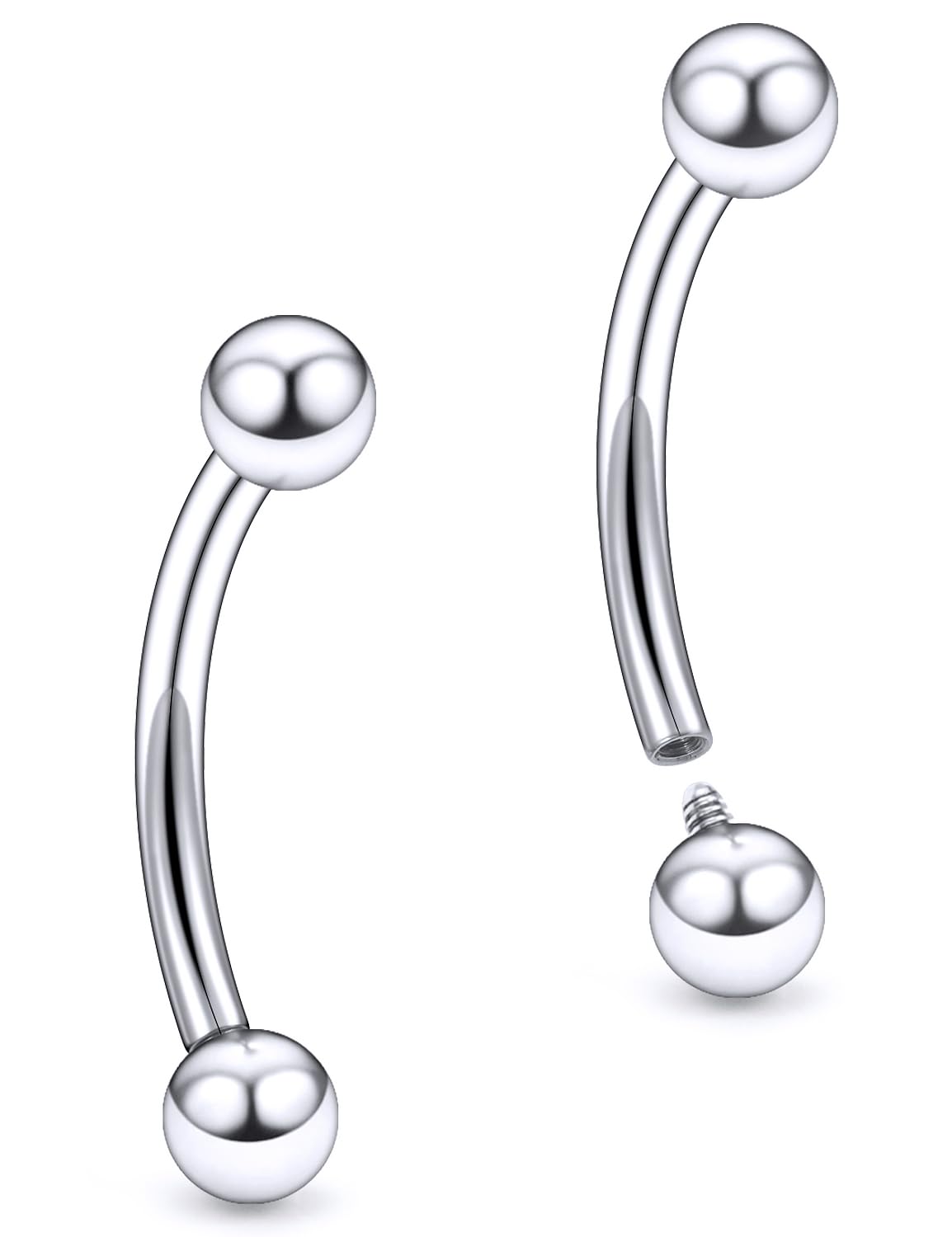 【Multiple Uses】: Titanium internal thread Curved Barbell Piercing Used as Eyebrow Piercing Jewelry, Anti Eyebrow Piercing Jewelry, Vertical Labret Lip Jewelry, Rook Earrings, Bridge Piercing Jewelry, Small Blley Button Ring, Navel Rings, Frog Eyes Piercing Jewelry, Snake Eyes Tongue Rings, Snake Eyes Piercing Jewelry, Vertical Hood Piercing Jewelry, Surface Tragus Piercing Jewelry, VCH Piercing Jewelry.