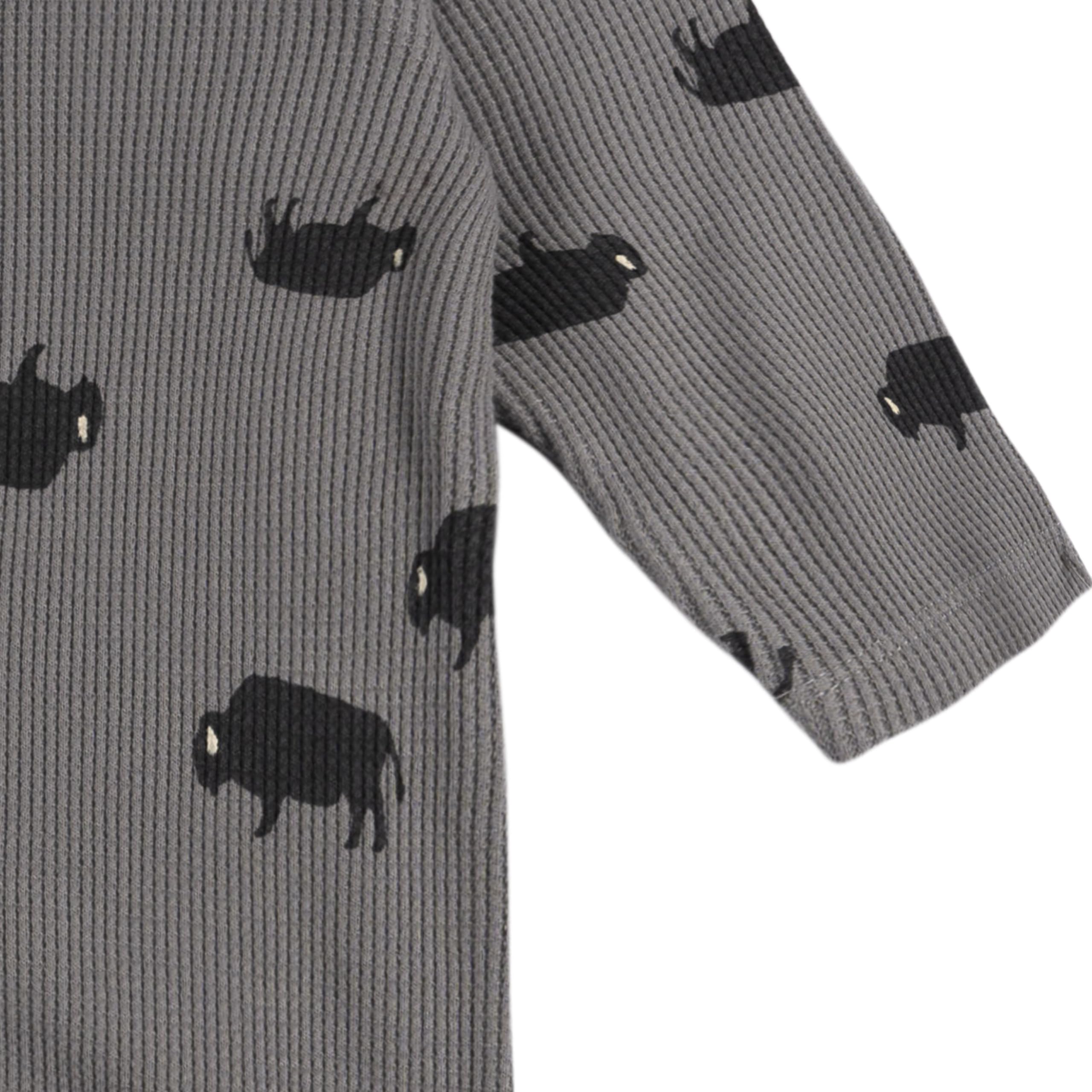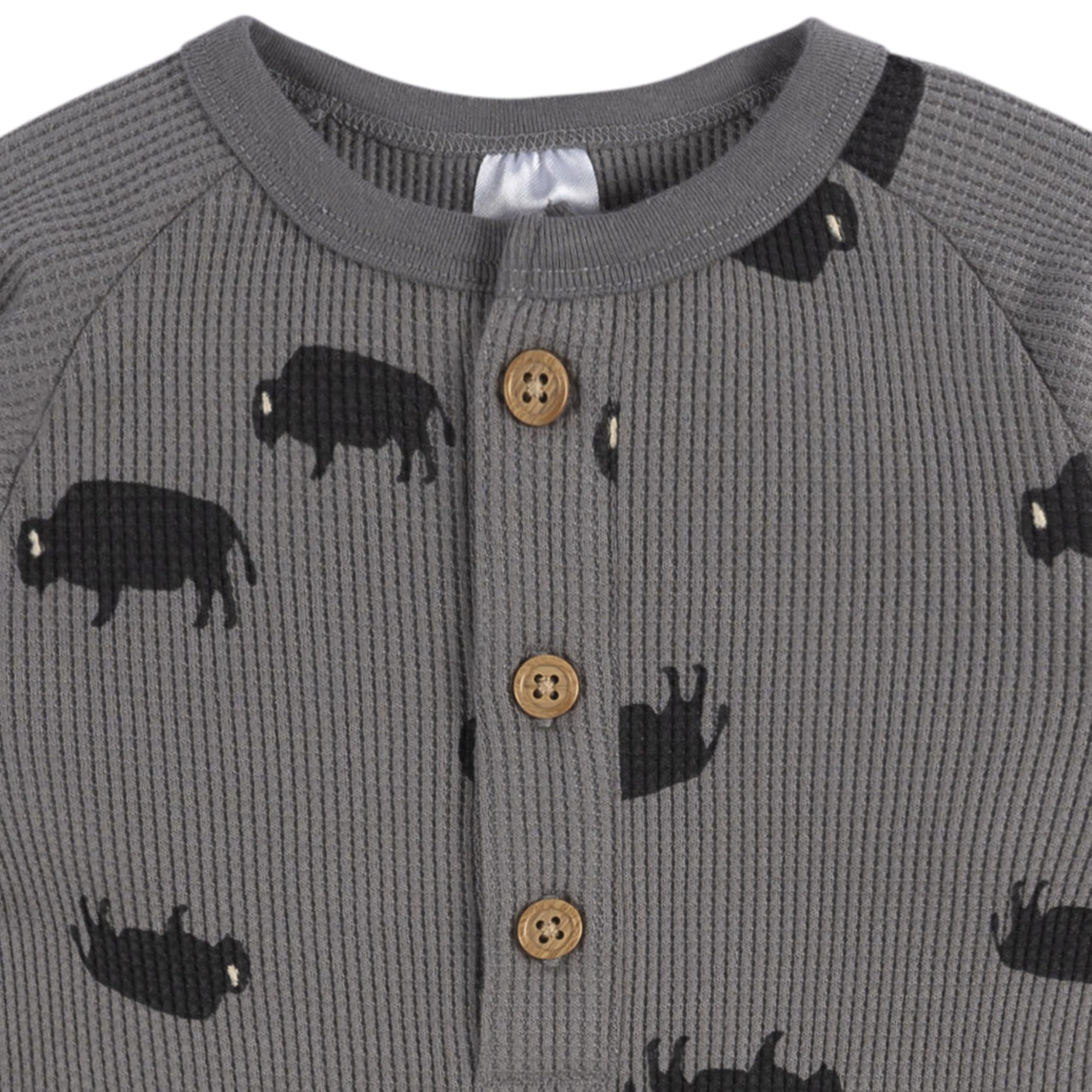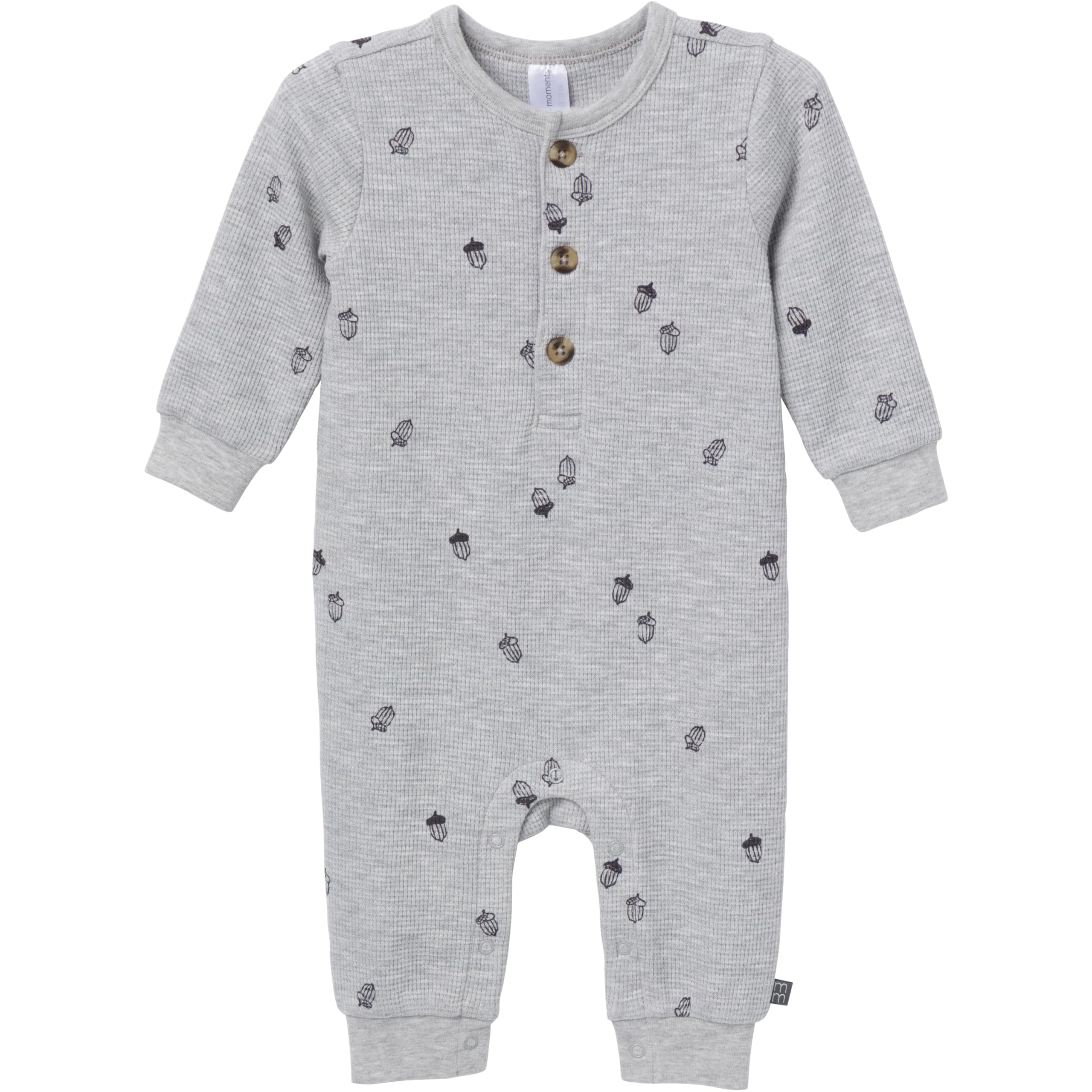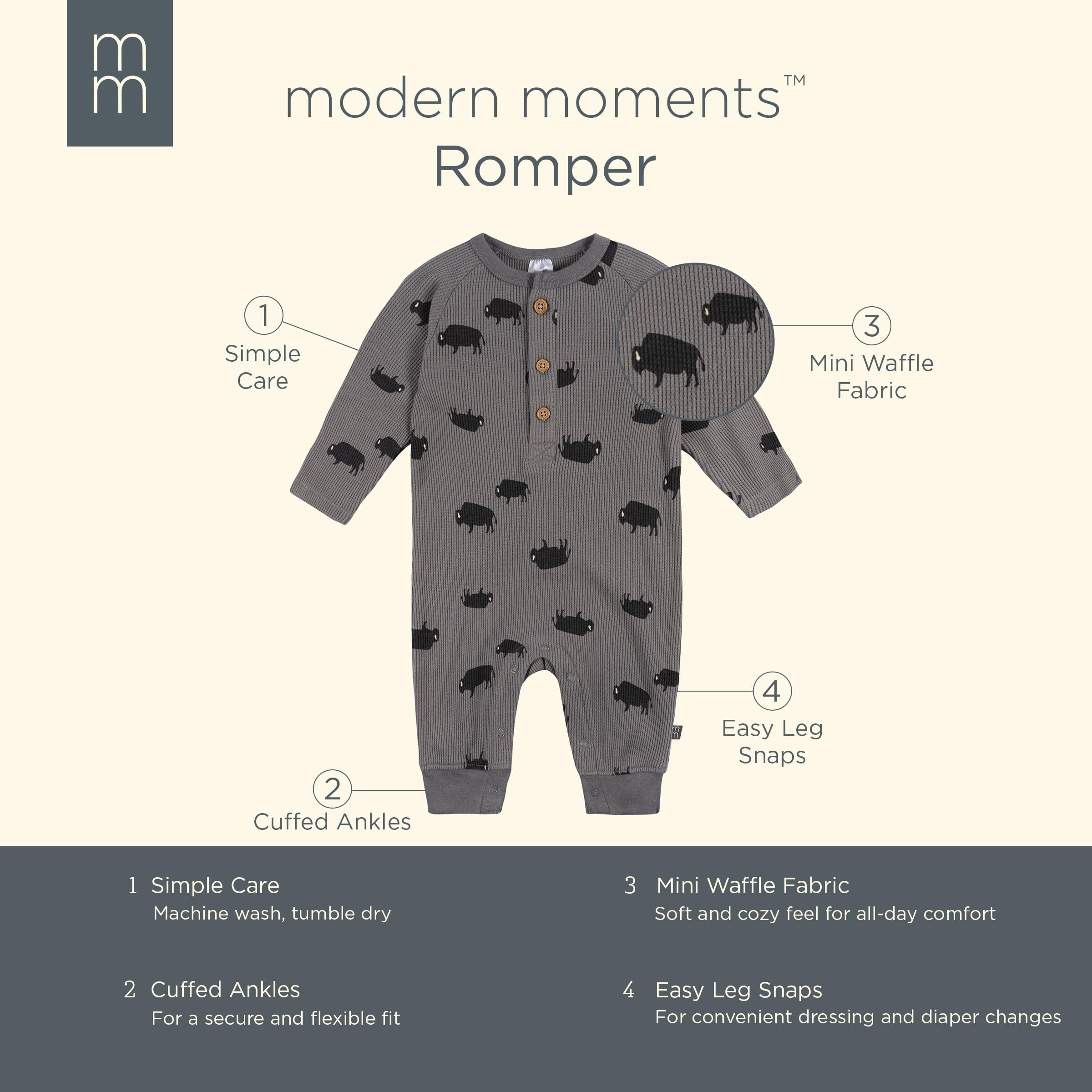 Description Our baby or toddler romper, crafted primarily from soft cotton with spandex for a slight stretch, is the perfect choice for snuggles or play time with your little one! The cozy feel is perfect for cooler days, ensuring your little explorer stays snug and happy all day long. Convenient leg snaps make it easy to complete diaper changes without removing the entire outfit, and Henley-style faux wood buttons enable slight adjustments to the fit. An ideal choice for fall and winter, the romper is machine washable so you can keep it clean and ready to wear all season long.