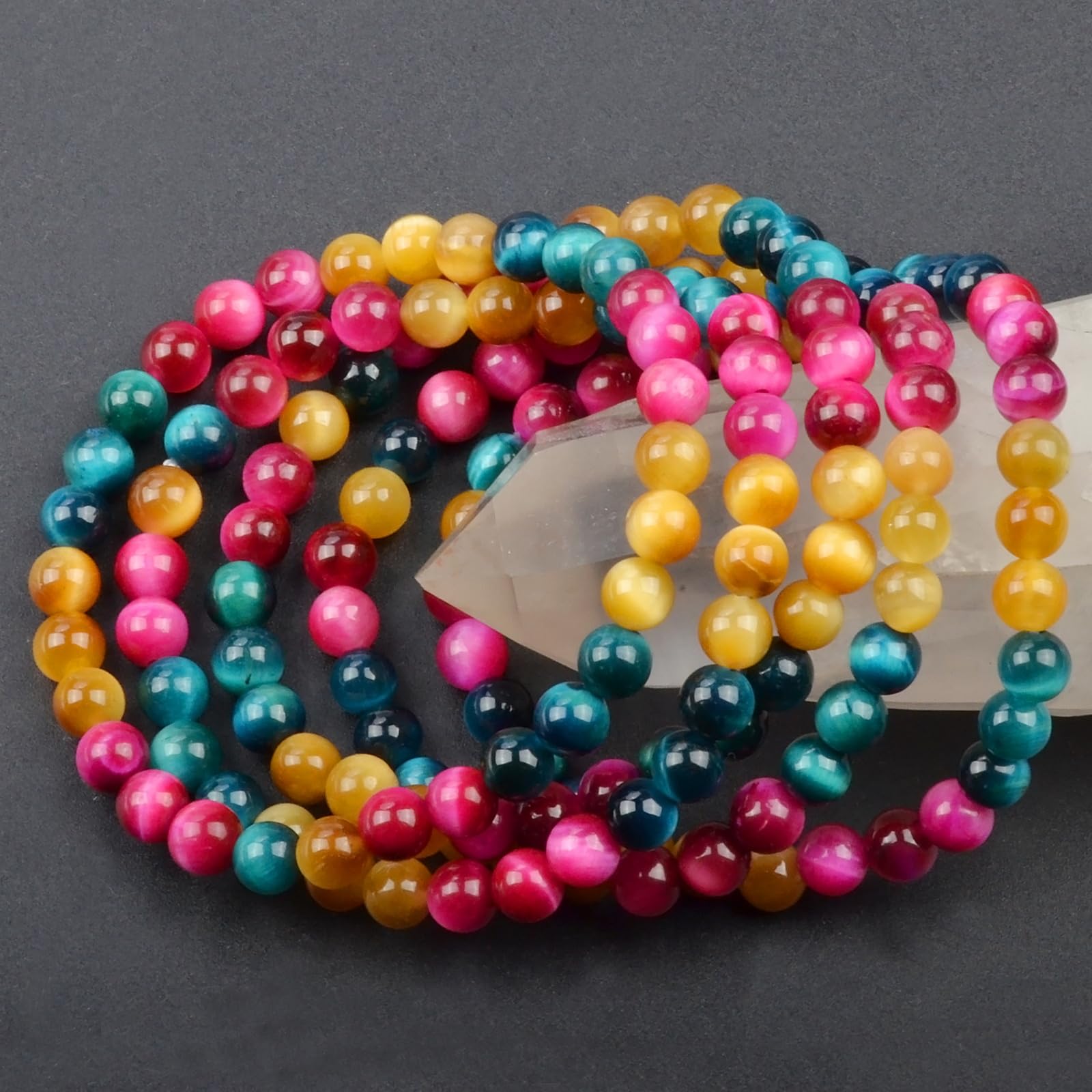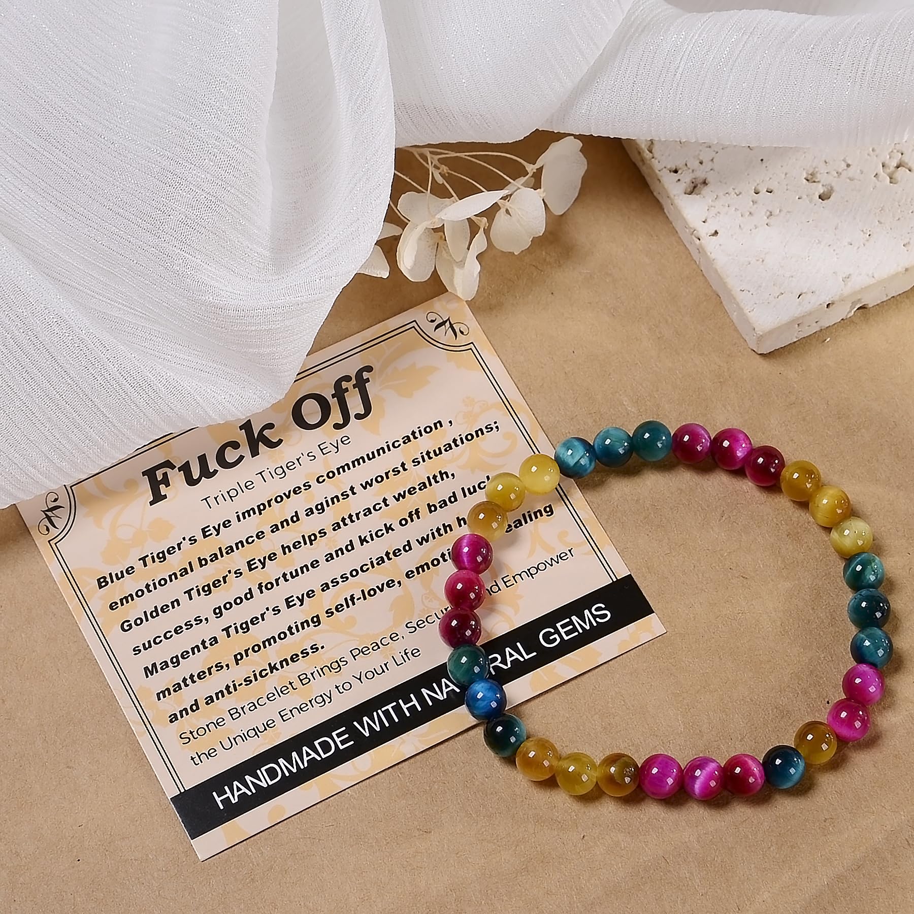 🍀 [High Quality Materials] Material: Triple Tiger's Eye; Size: 6mm(diameter); Elastic Handmade Bracelet.
