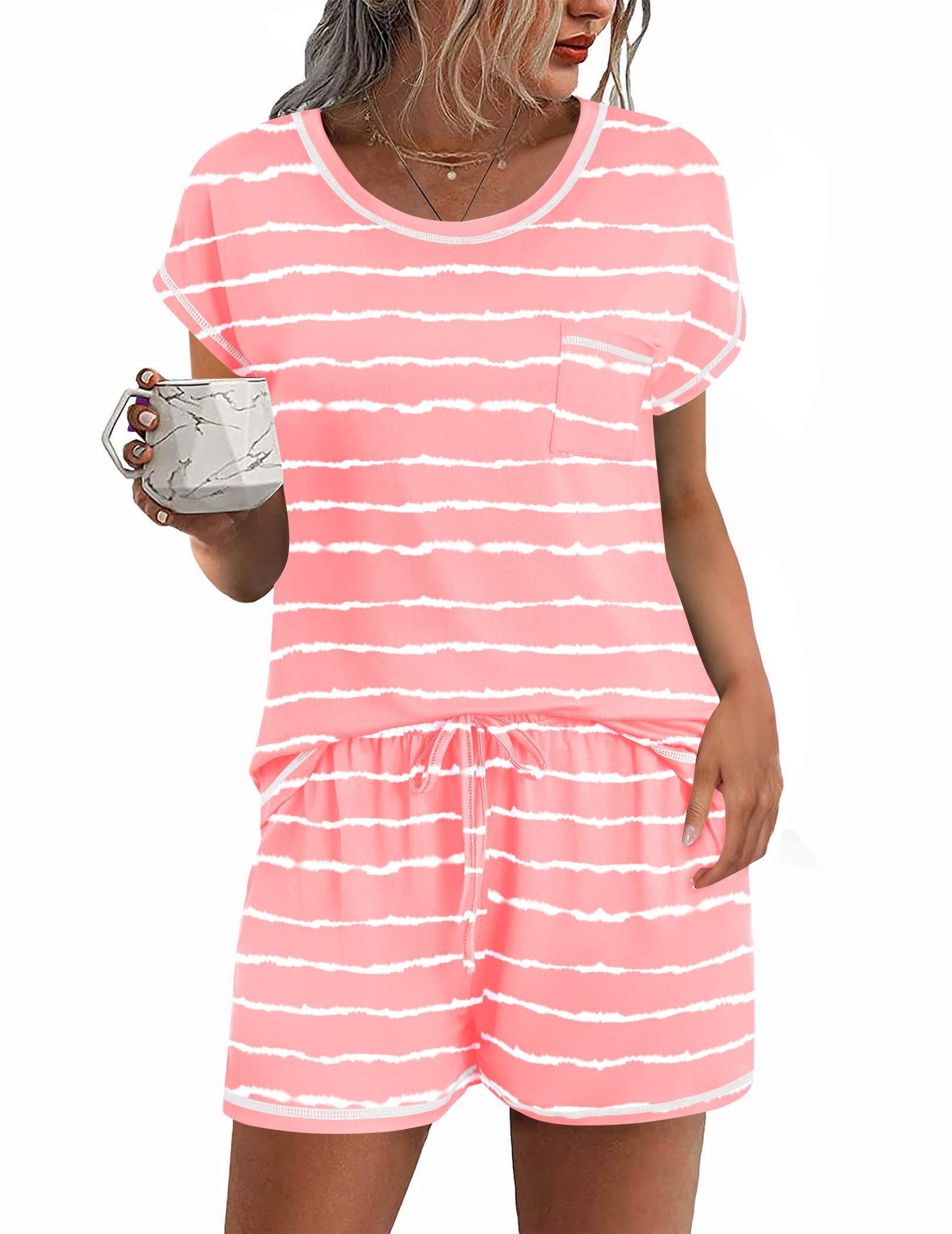 Short Sleeve Tops:The sleep shirt features round neck and chest pockets.Classic and convenient designs make these pj sets more stylish and unique.Great nightwear,loungewear that feels incredibly comfy and keeps you cool during hot nights