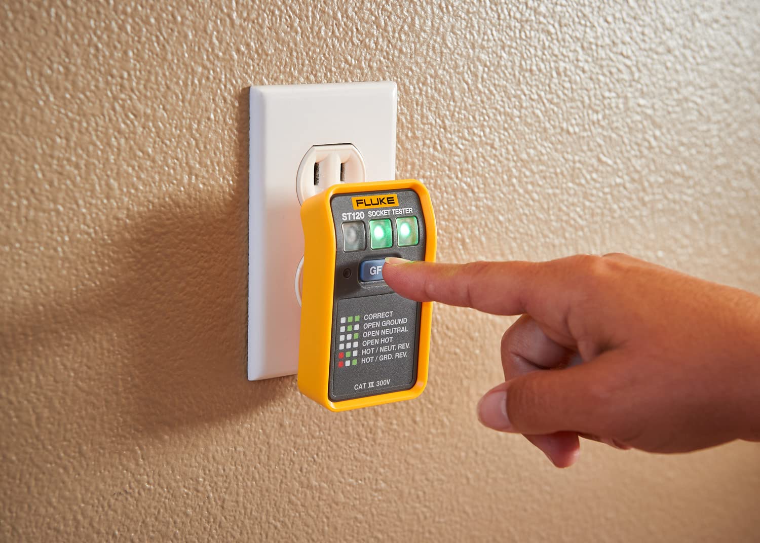 The ST120 socket tester with a GFCI test button from Fluke is a great introductory socket tester for home electricians and anyone wanting to quickly and easily test outlets. The bright, easy to read LEDs provide you with the information you need to easily recognize a miswired outlet. Plus, using the included table, you know how the outlet is miswired so you can repair it. The integrated GFCI test button gives you peace of mind by being able to individually check the GFCI trip function at your outlets, ensuring that they work as intended. The rugged yet compact design of the ST120 make it easy to carry with you to every job.