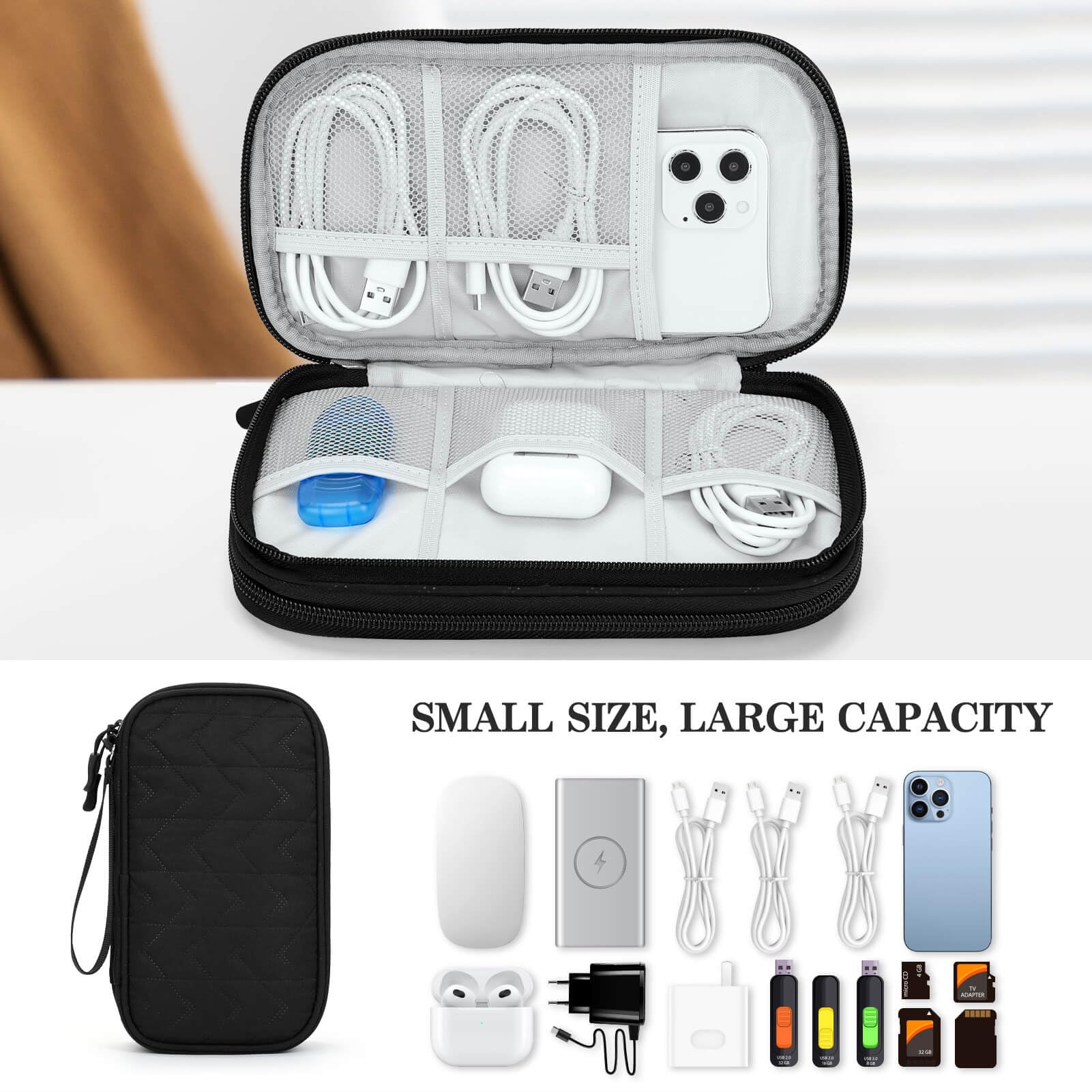 Dimensions: The Size of the cable storage travel case: 8.3" x 5" x 2.6". Compact size and lightweight make it easy to carry and put into your backpack, handbags or laptop bag without taking much space. Suitable for family use and daily organization