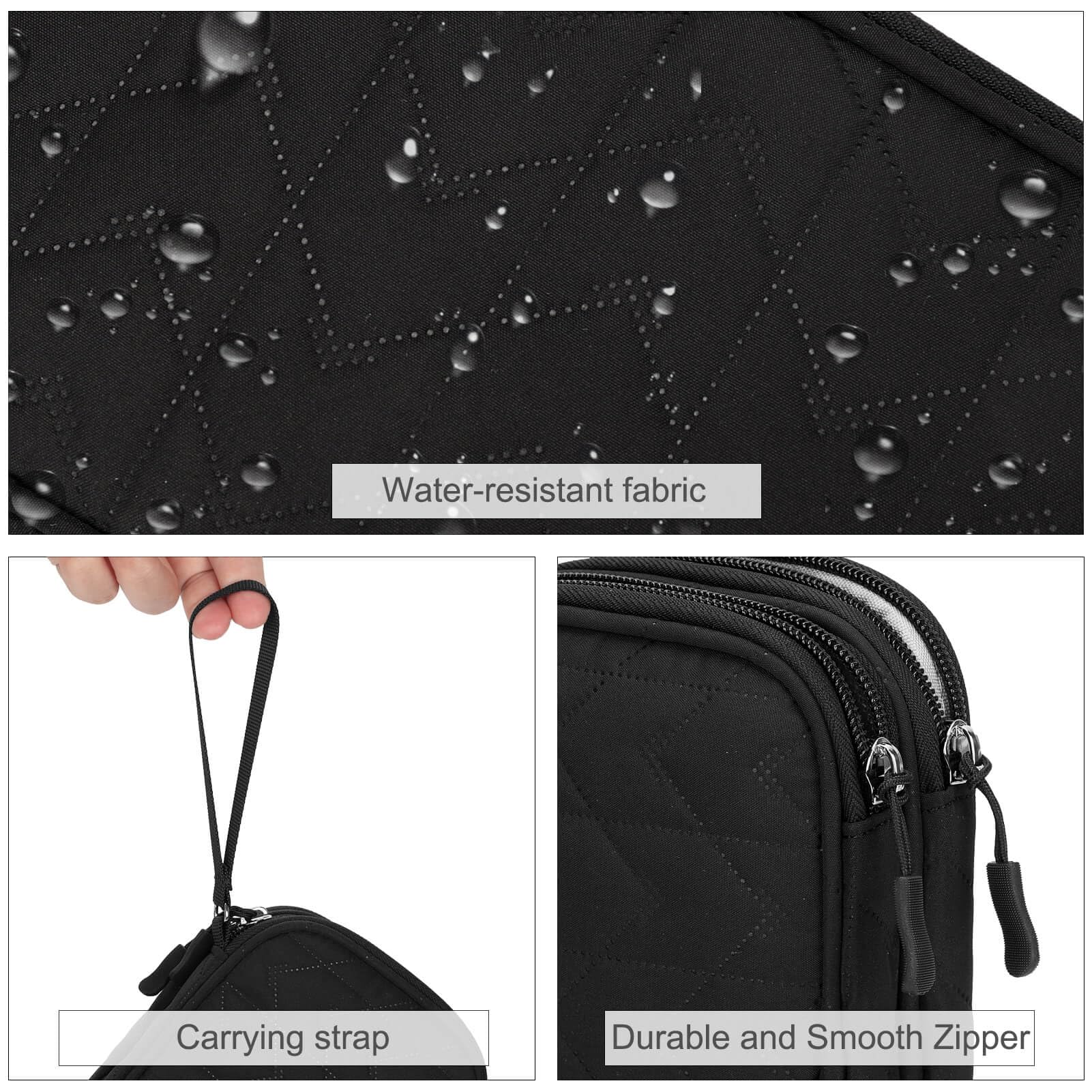 Quality Material: This electronic organizer travel case made of high quality durable waterproof oxford and soft sponge inside to secure your gadgets in place and deliver a quick access whenever you want. Water-resistant fabric protects your gear from unexpected splashes, keeping all your electronic essentials safe and secure