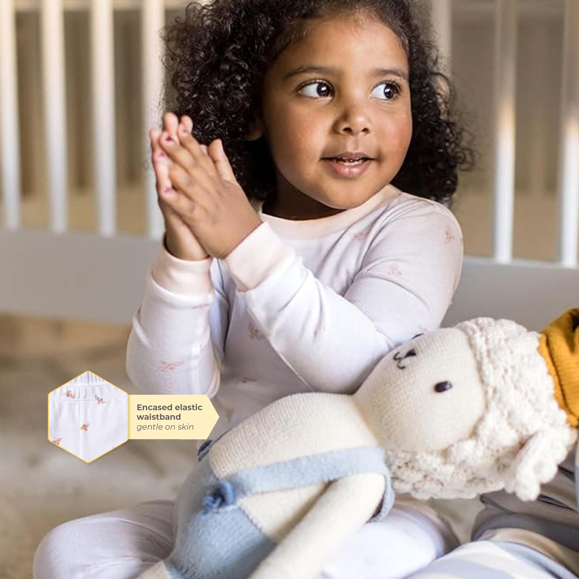 Gentle Elastic Waistband: These baby essential pajamas are encased with an elastic waistband that ensures a snug fit while locking in warmth and comfort without irritating your baby's delicate skin. These baby, toddler & kids' pajamas are machine wash-safe under gentle cycles.
