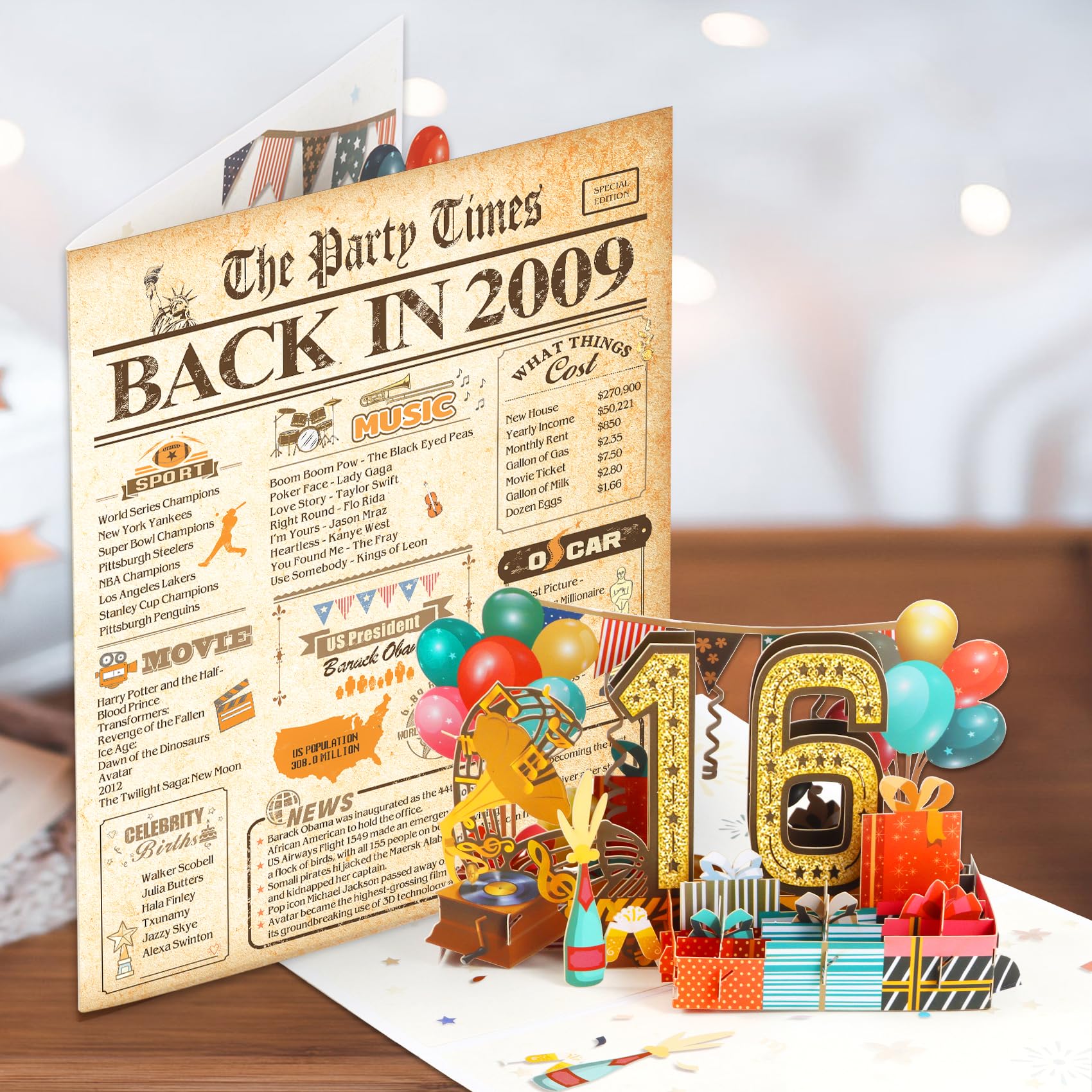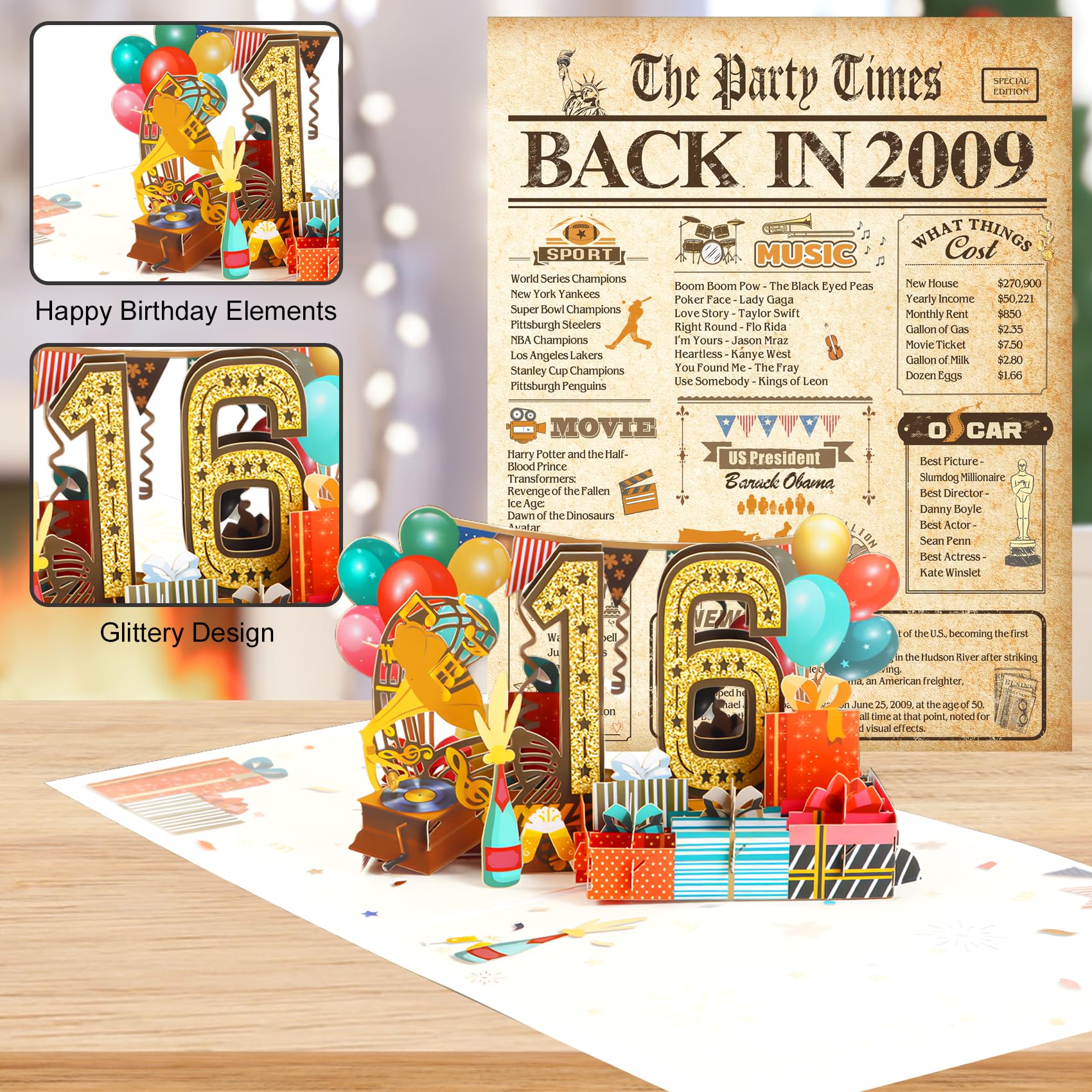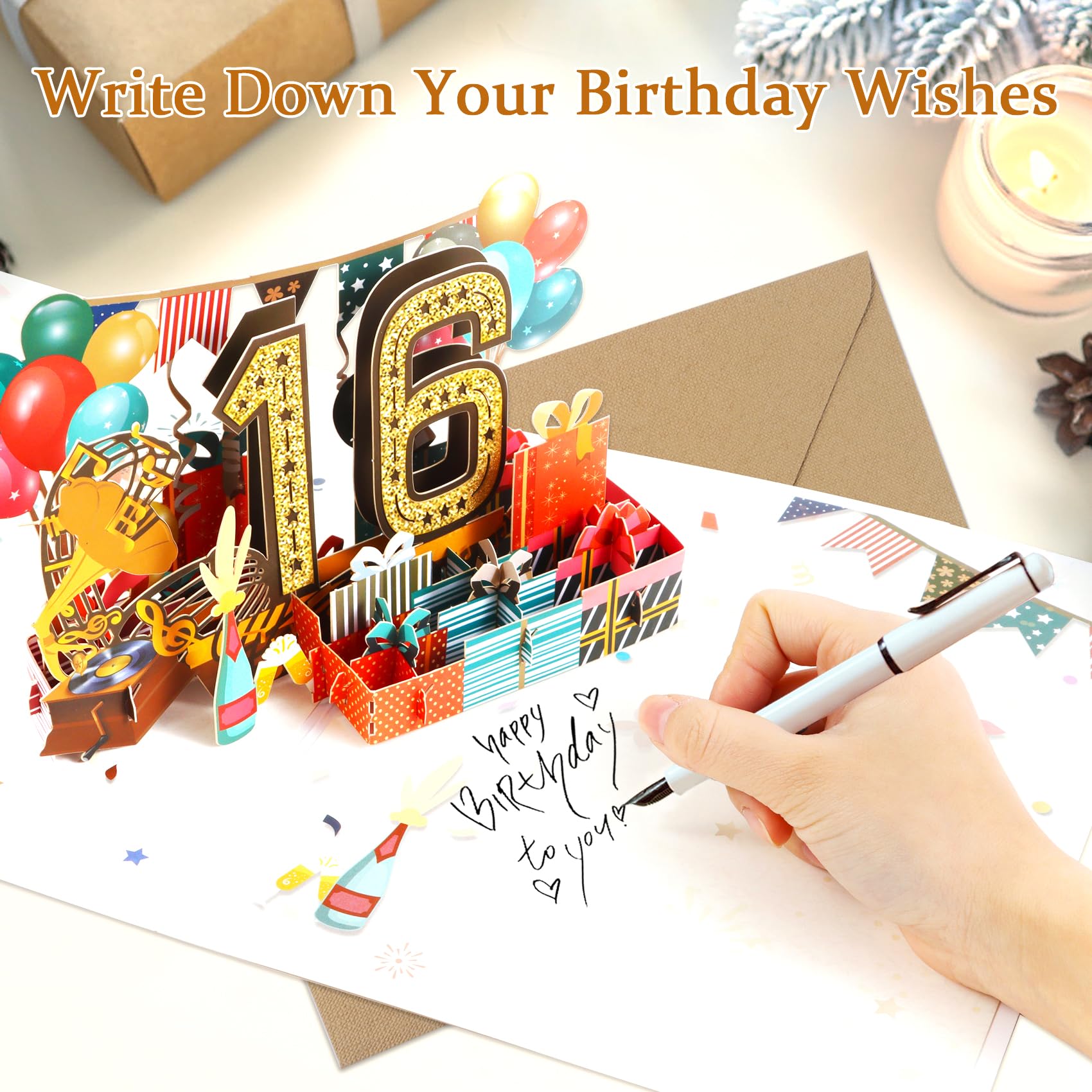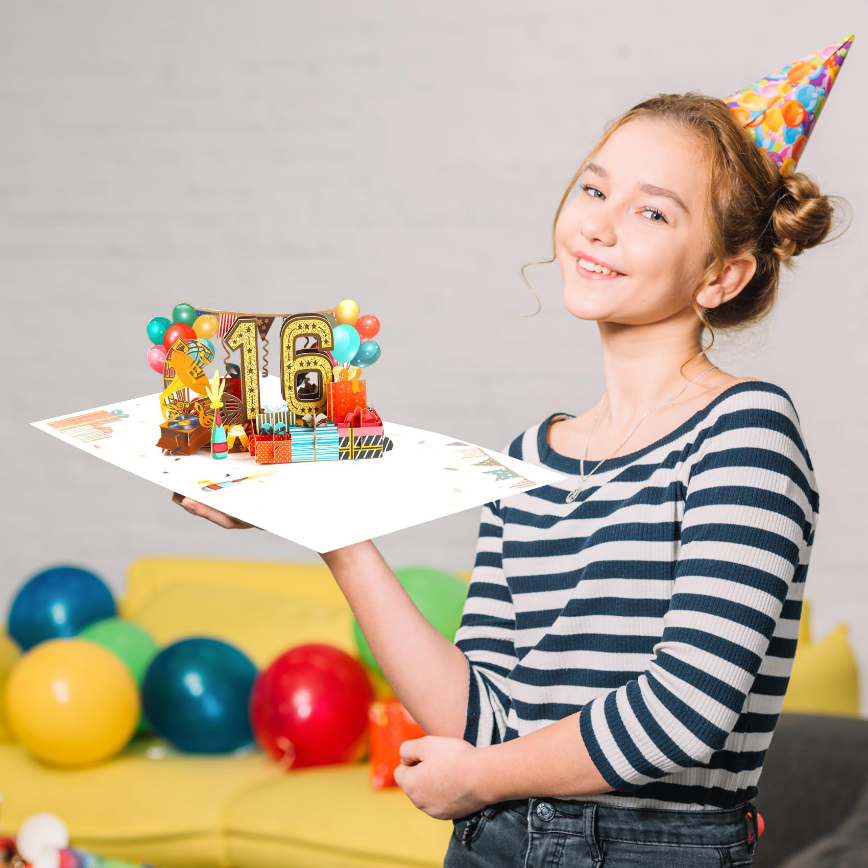 16th Birthday Pop Up Card: This cute 16th birthday pop up card is mini-masterpiece displays a beautiful 3D pop-up design.It can be popped up of features “16” with balloons and gift box. Ideal Creative Gifts for party. Makes your birthday or anniversary party’s decorations stand out