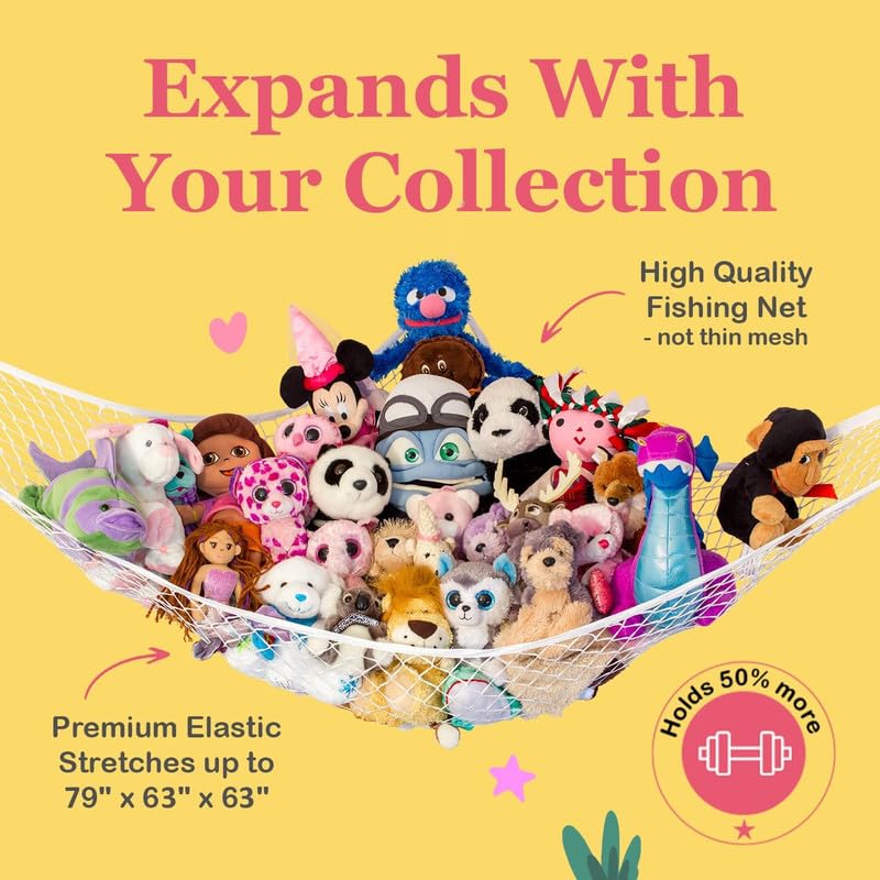 Space-Saving Solution: Our stuffed animal net expands to 79" x 63" x 63" for maximum storage area.